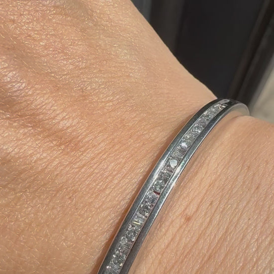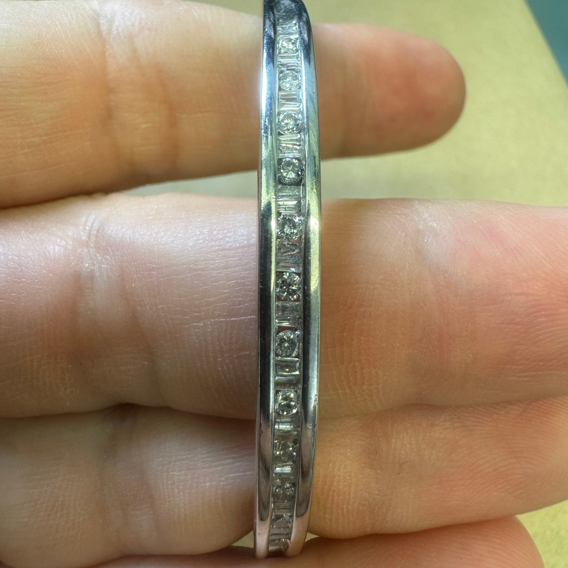 צמיד זהב לבן 10 קראט, קשיח, משובץ יהלומים בחיתוך מרובע