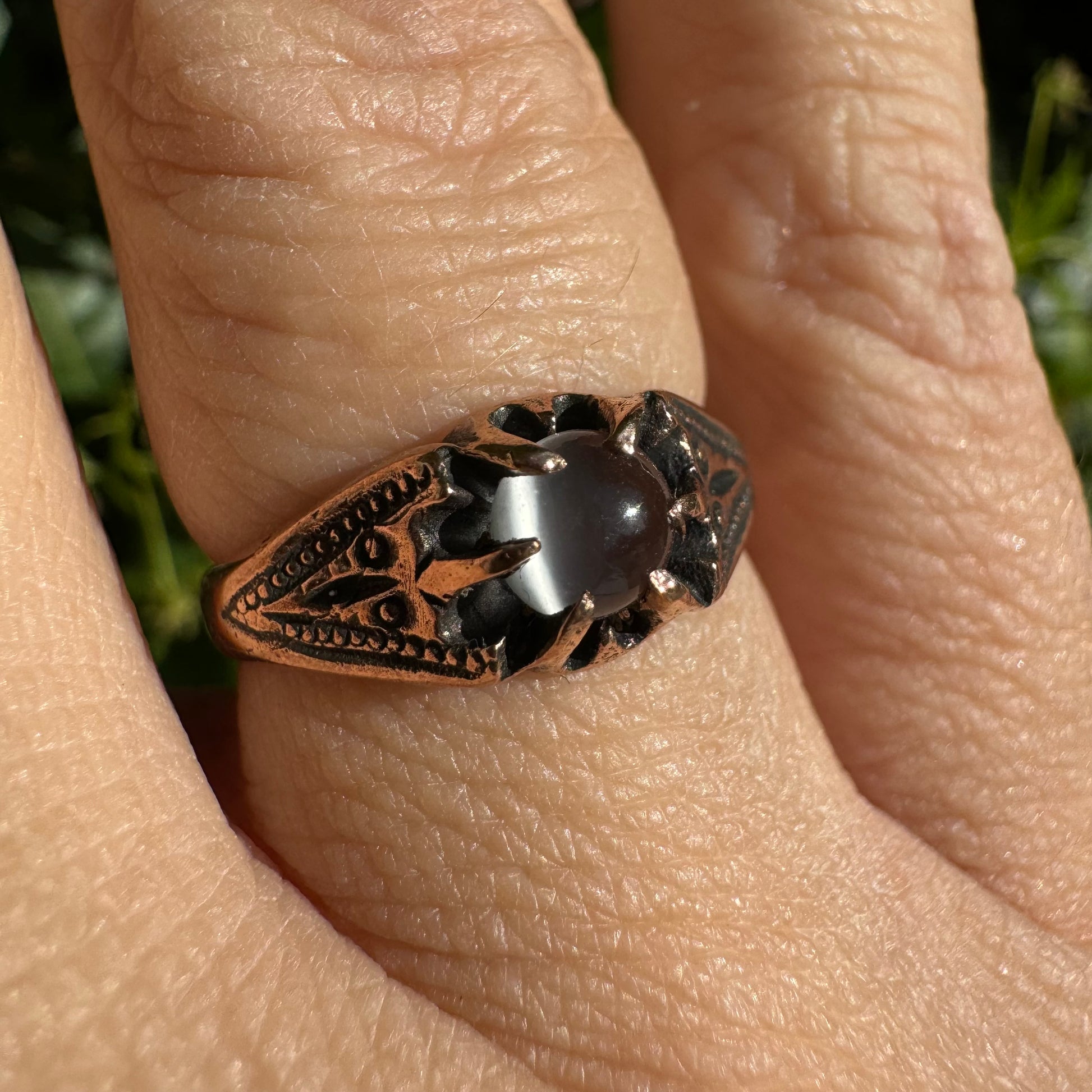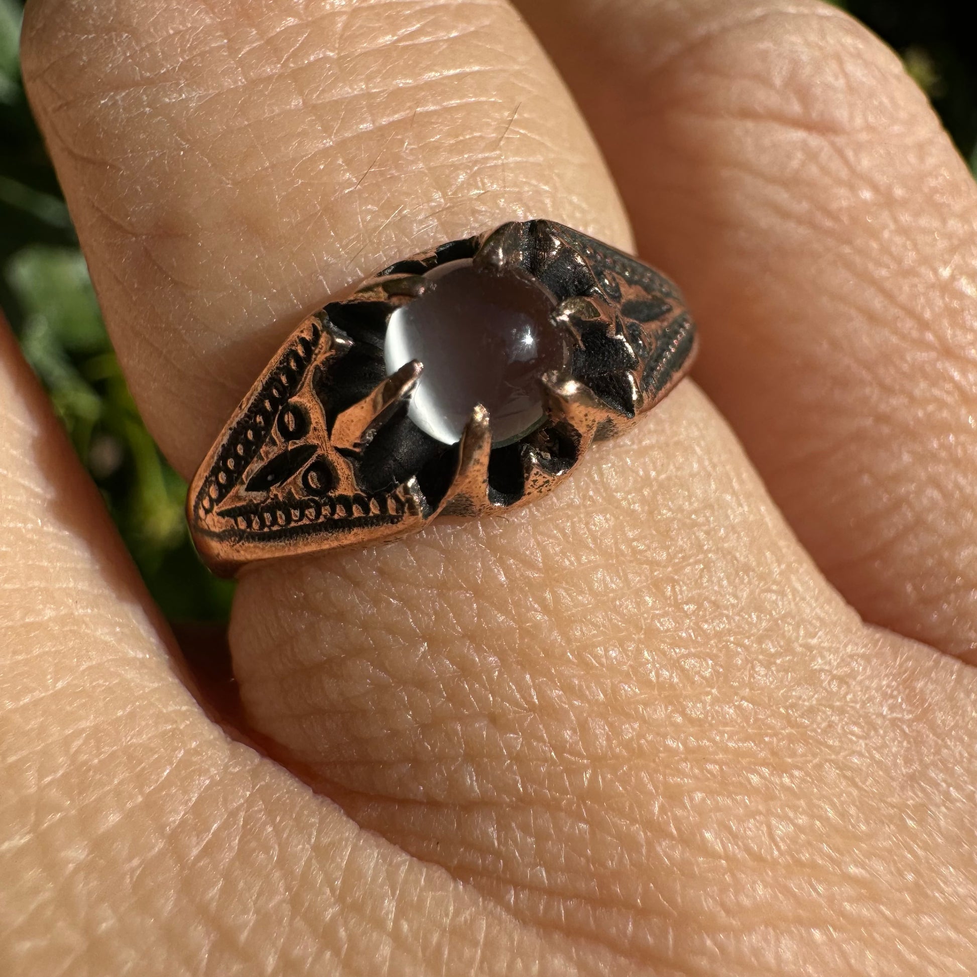 טבעת זהב אדום משובצת אבן מונסטון (אבן ירח)
