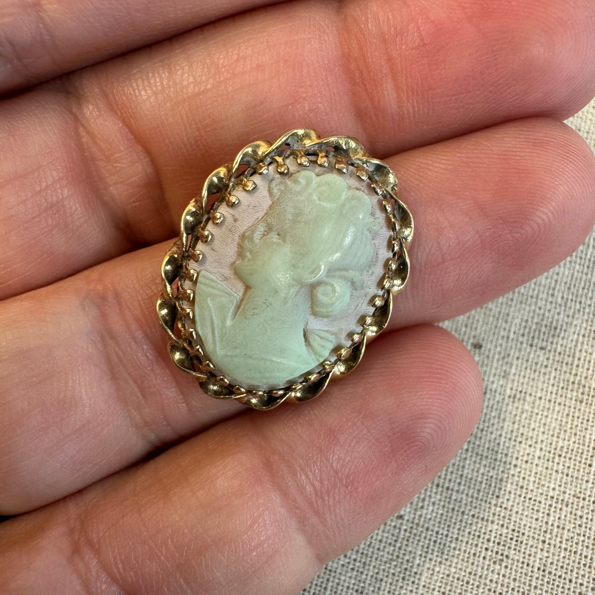 תליון זהב צהוב 14 קראט קמאו ״דמות נשית״