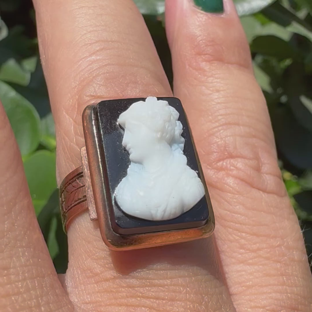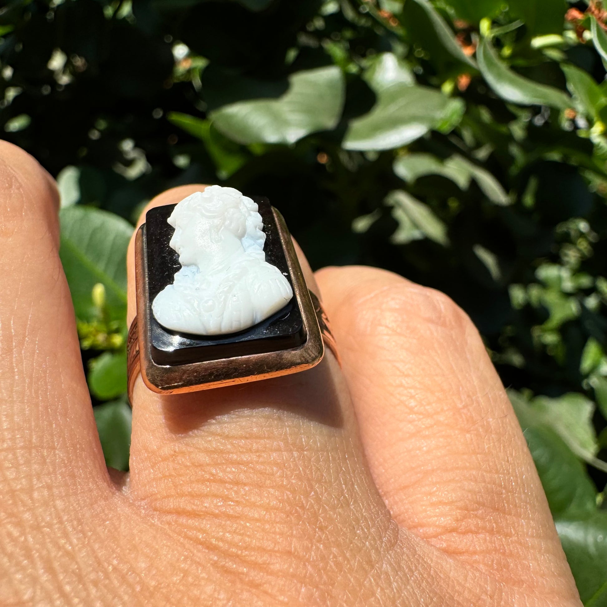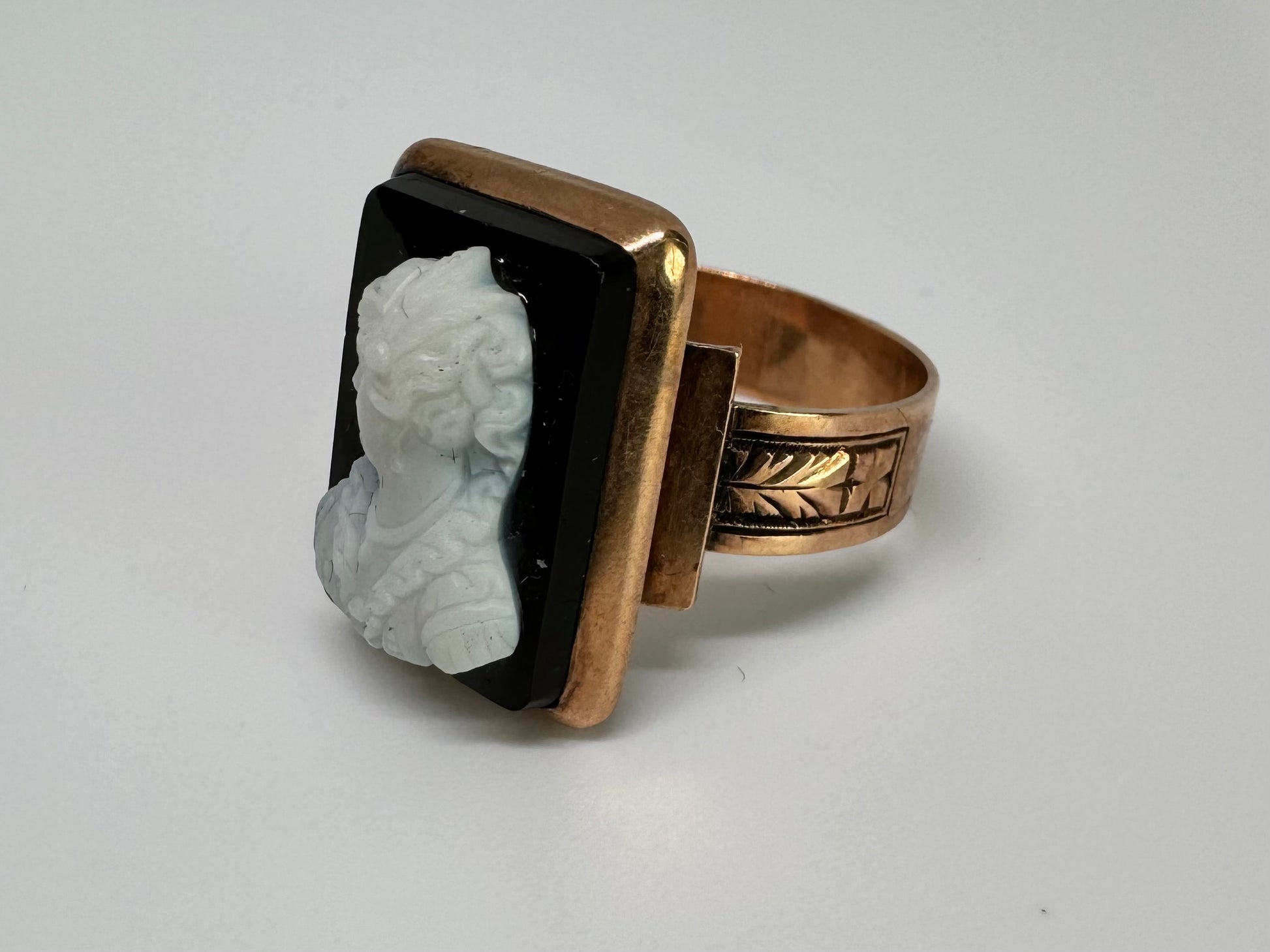 טבעת זהב 14 קראט ״קמאו״ גילוף על צדף
