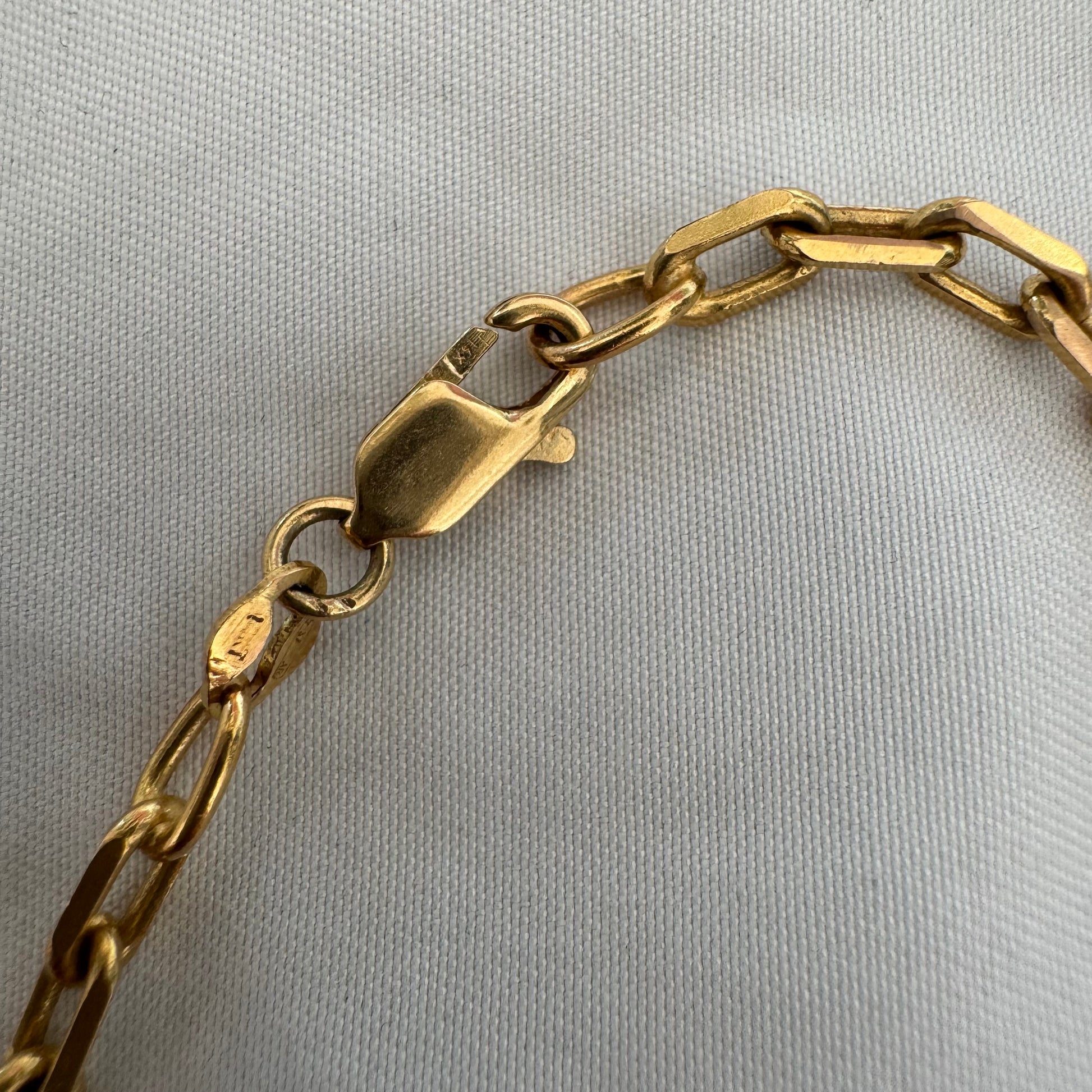שרשרת זהב 14 קראט בעיצוב חוליות מוארכות ומבריקות.