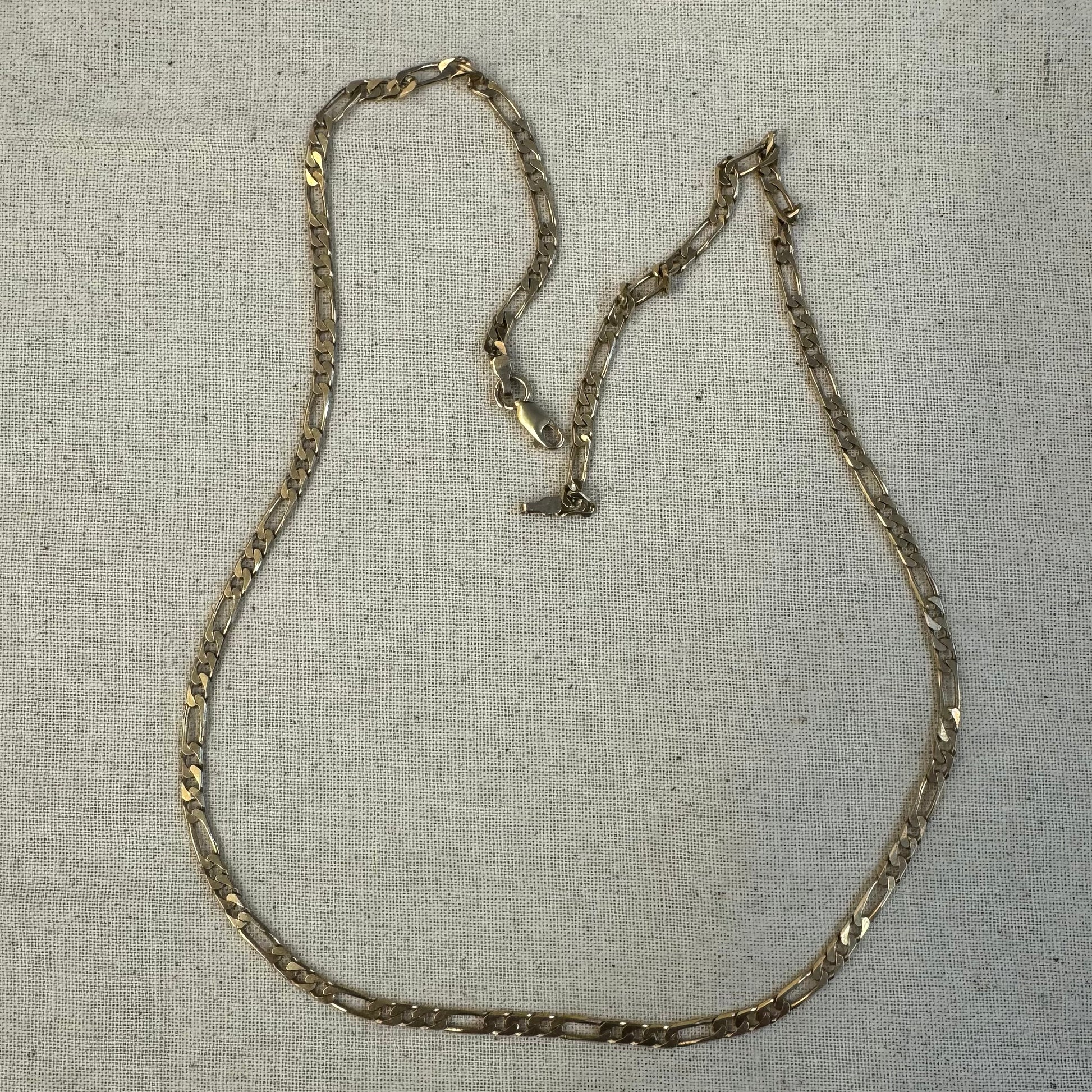 שרשרת זהב 14 קראט בסגנון Figaro chain – עיצוב קלאסי שבו חוליות קצרות מתחלפות עם חוליה אחת ארוכה.