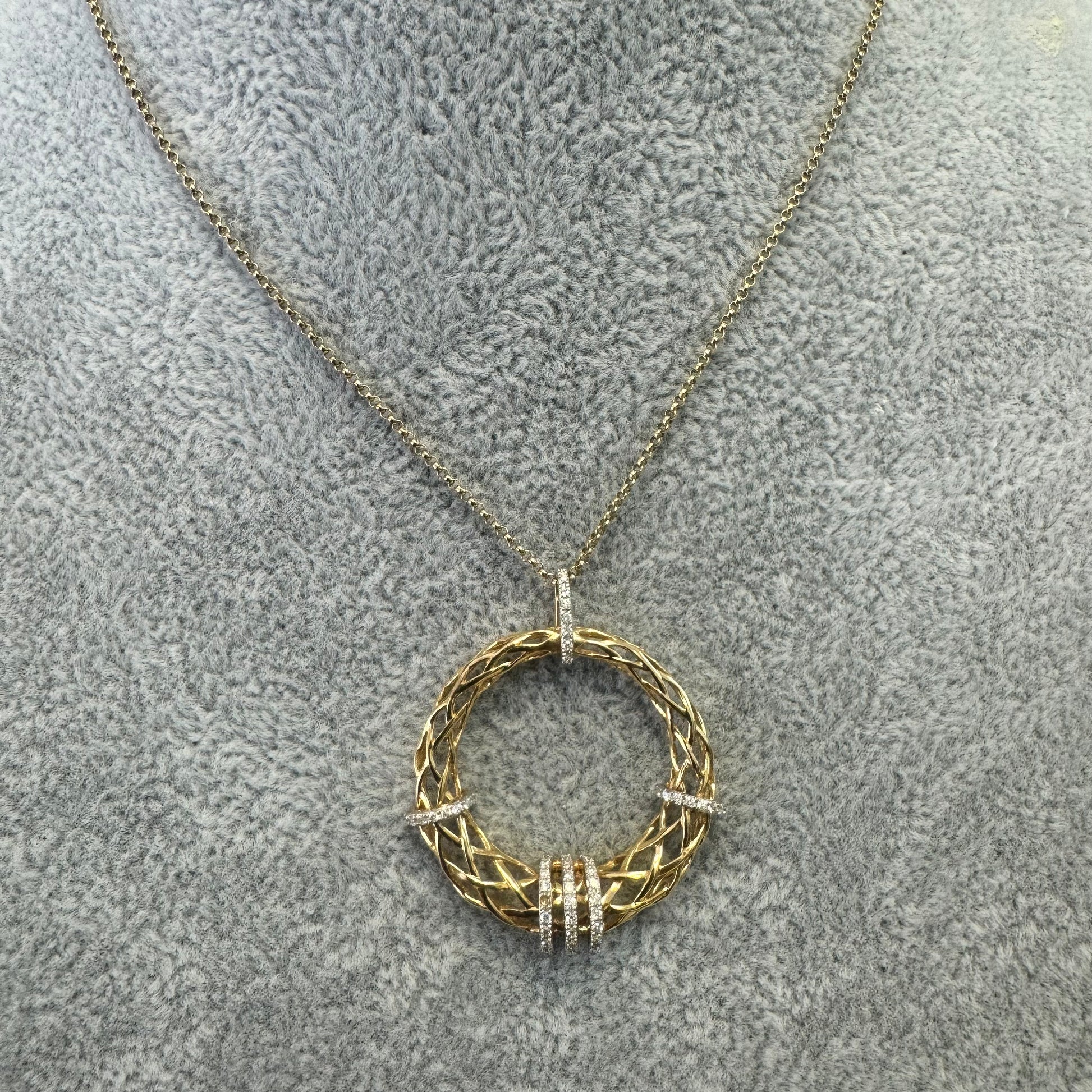 שרשרת זהב צהוב עם תליון עגול משובץ יהלומים