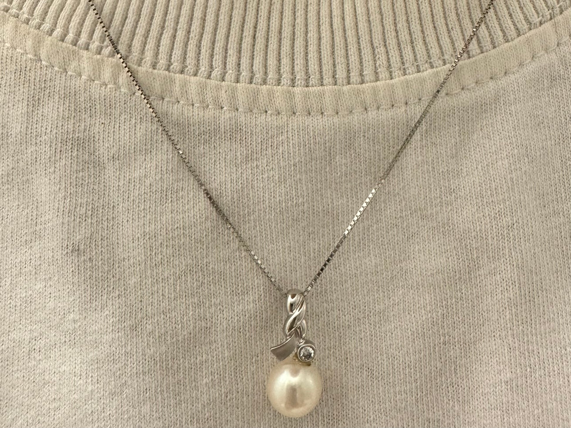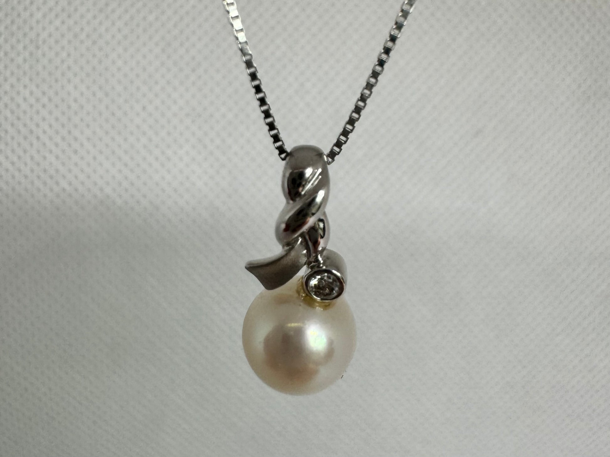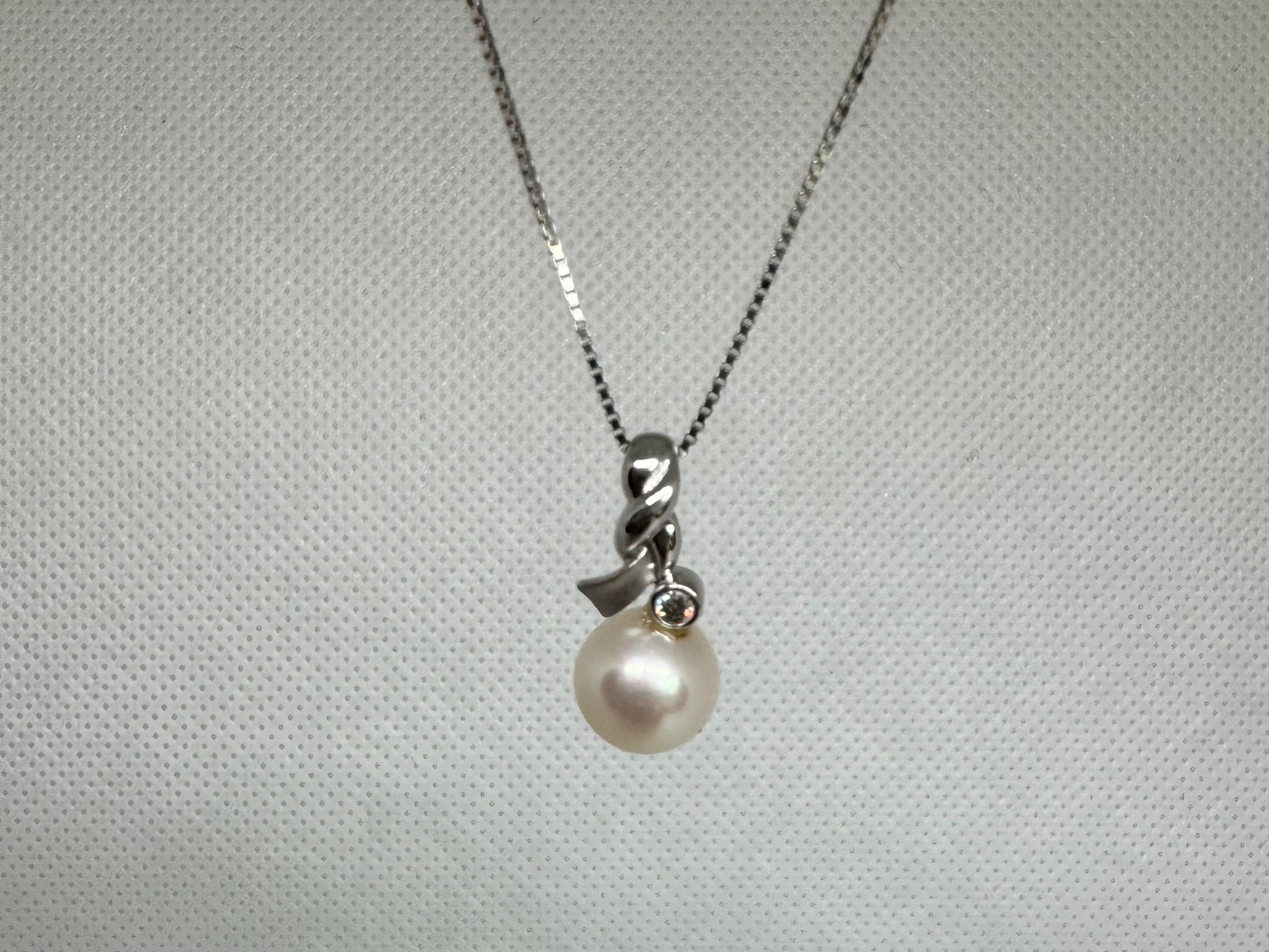 שרשרת זהב לבן 14 קראט משובצת פנינה ויהלום