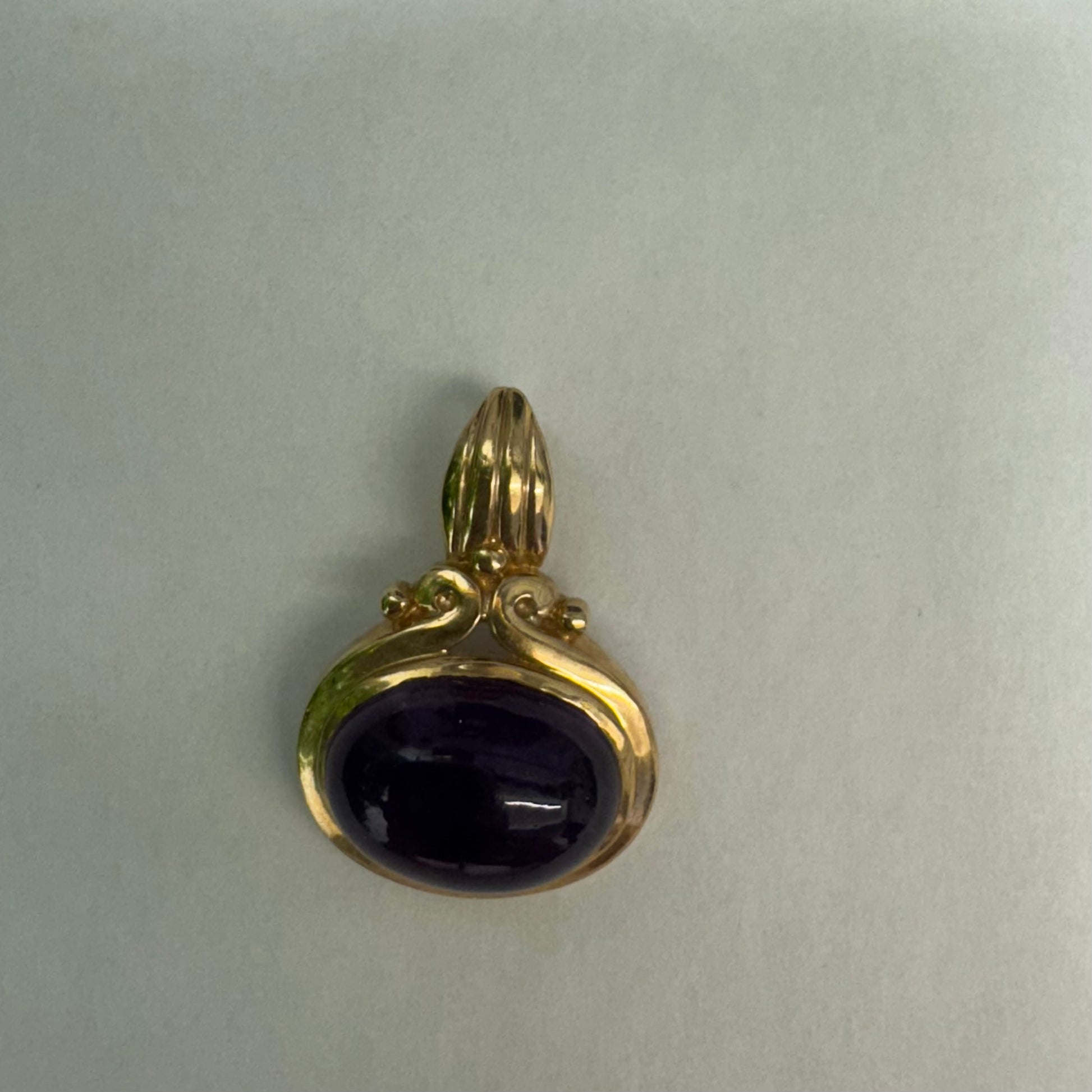 תליון זהב צהוב 14 קראט משובץ באבן אמטיסט קבושון גדולה – עשיר, אלגנטי ובעל קסם וינטג’ ייחודי