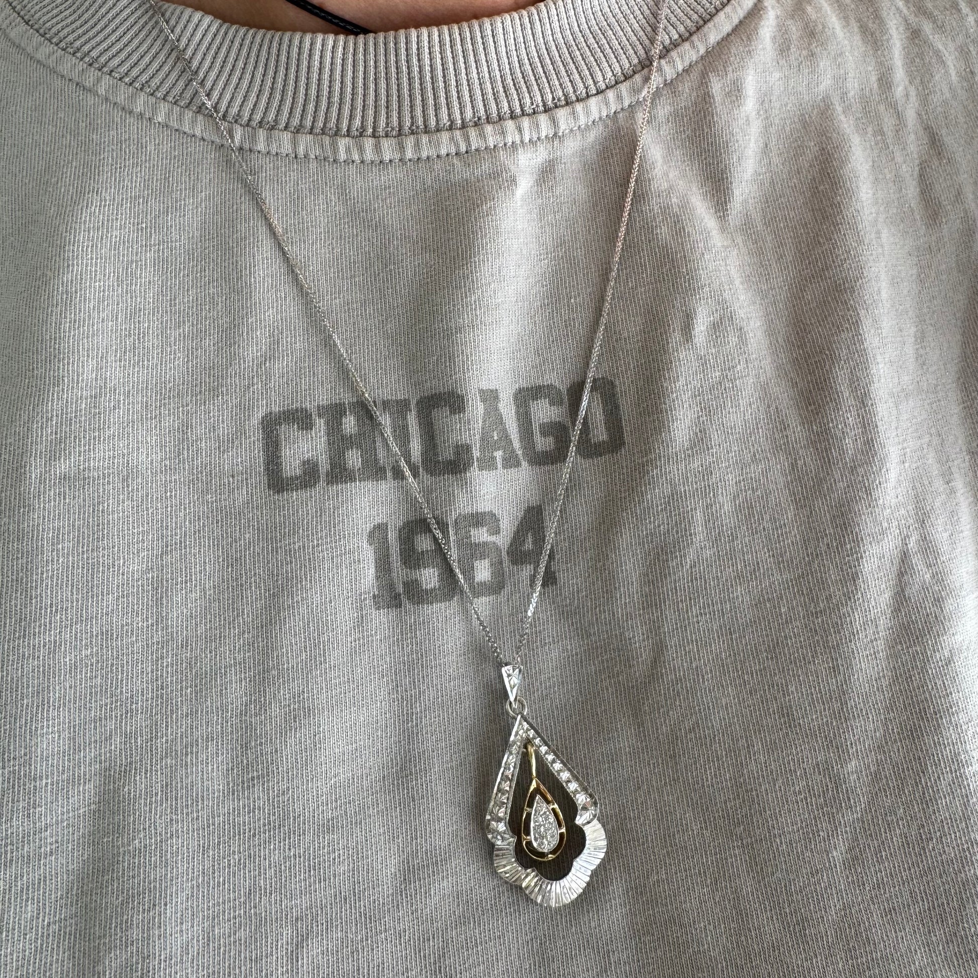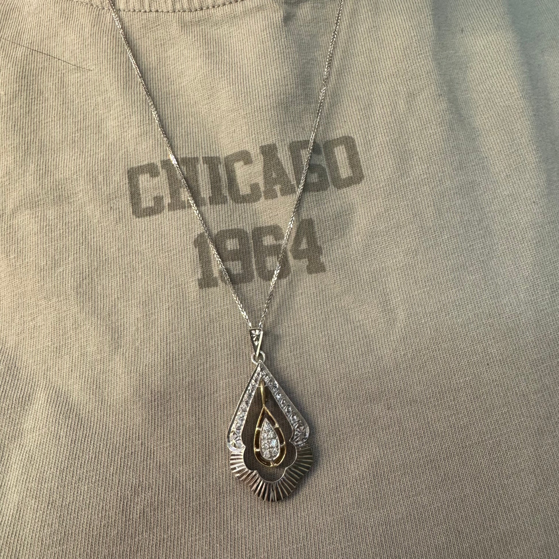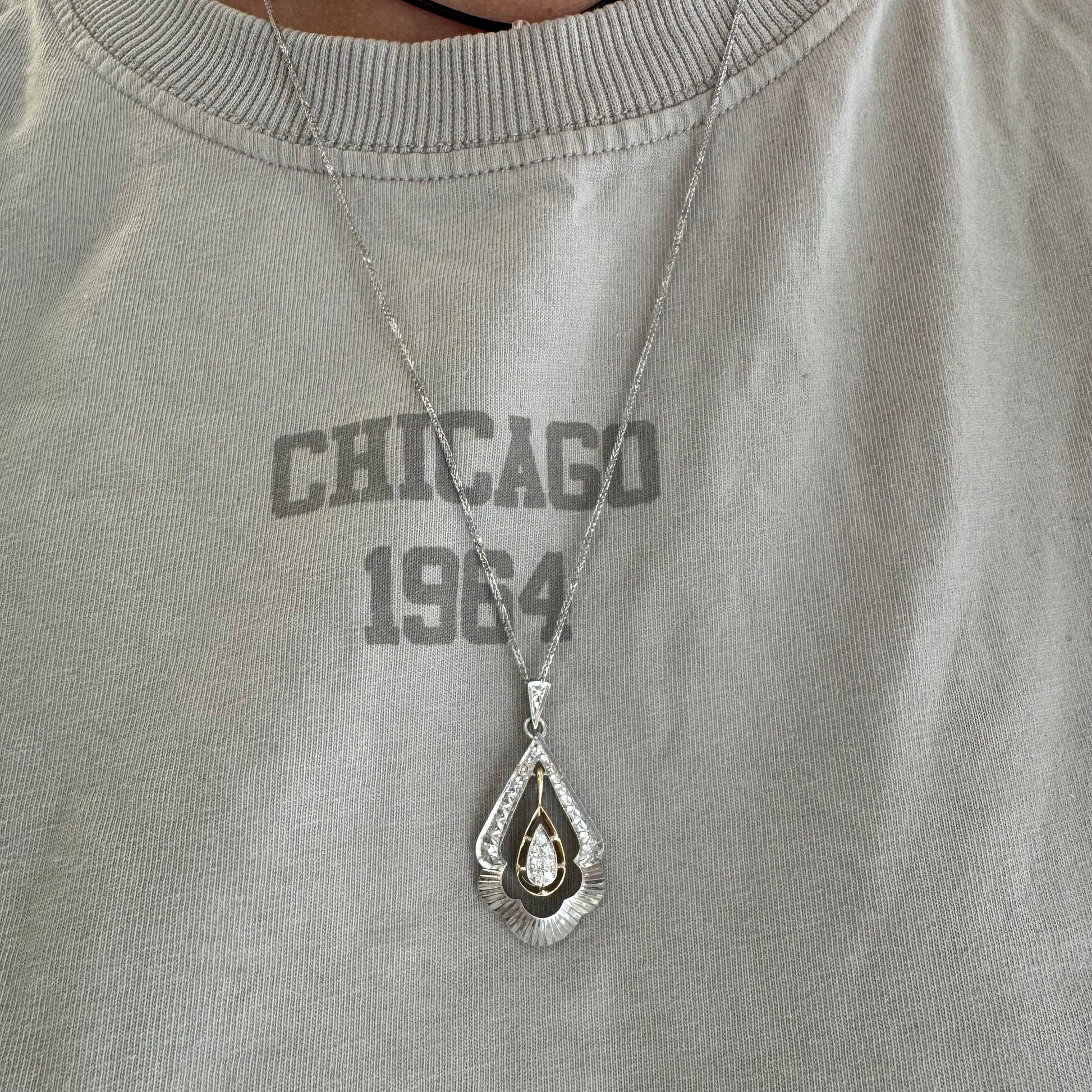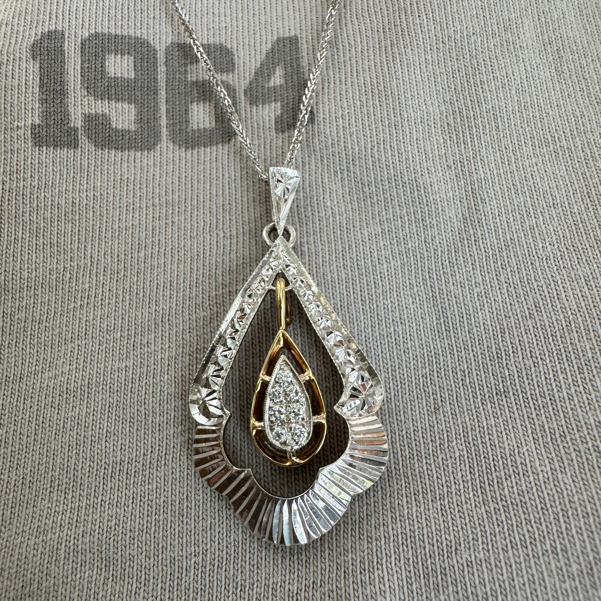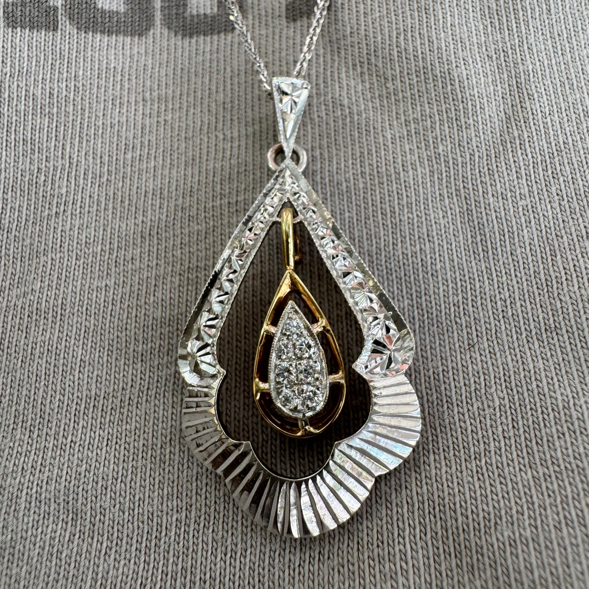 14K white and yellow gold pendant in a unique geometric design set with Diamonds