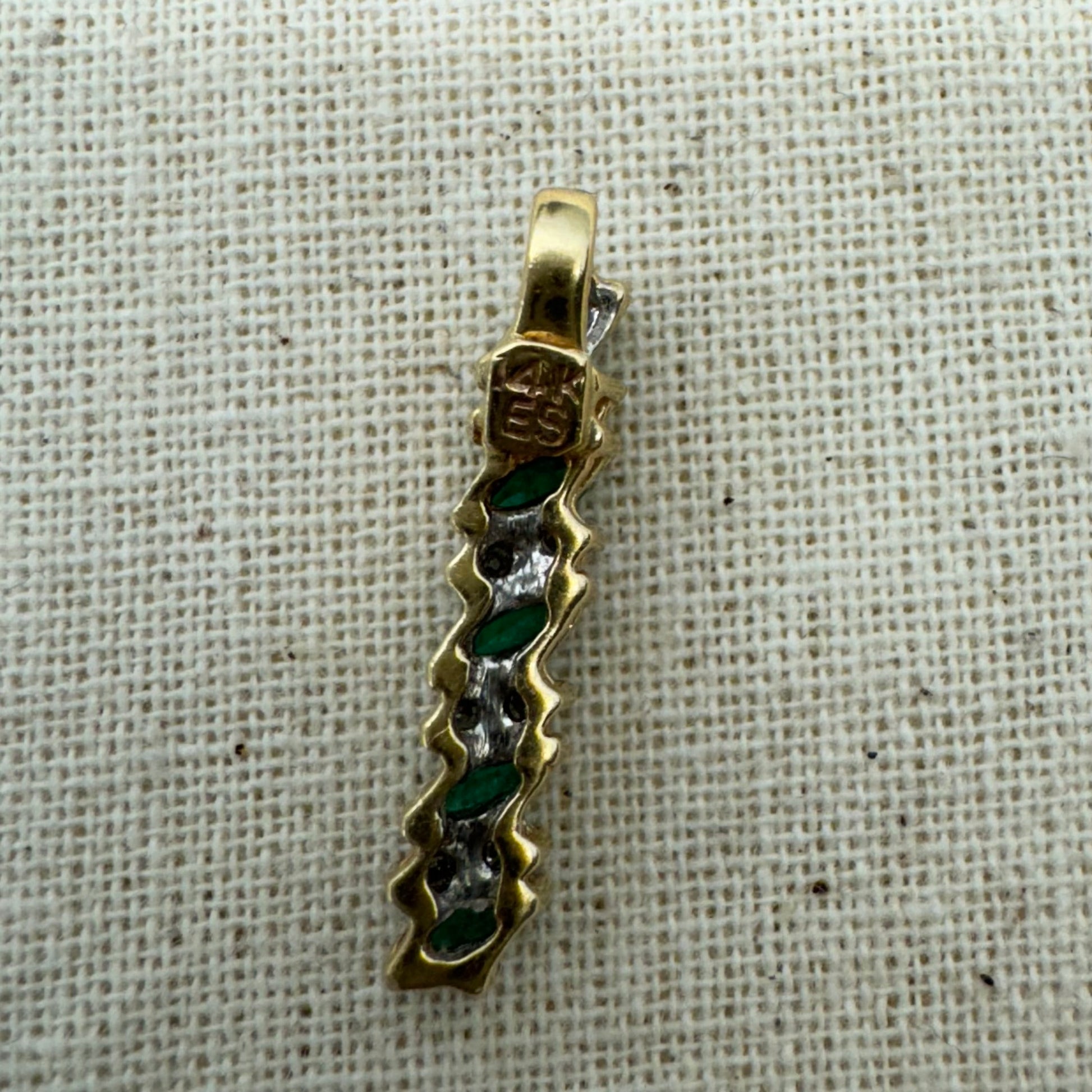תליון זהב צהוב 14 קראט משובץ אבני אמרלד ויהלומים