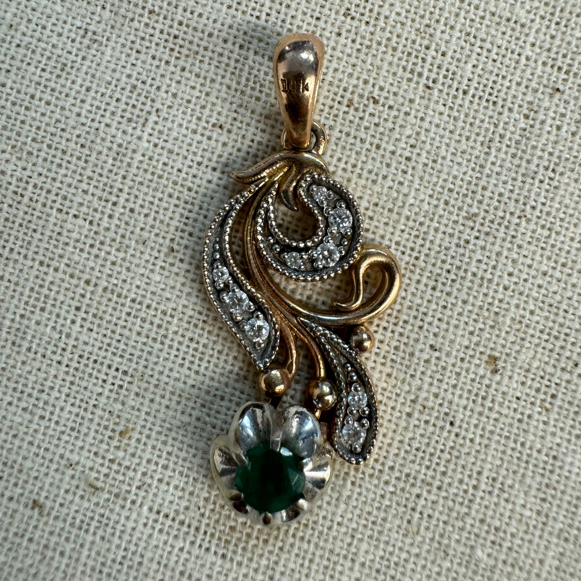 תליון זהב אדום 14 קראט משובץ אבן אמרלד ויהלומים