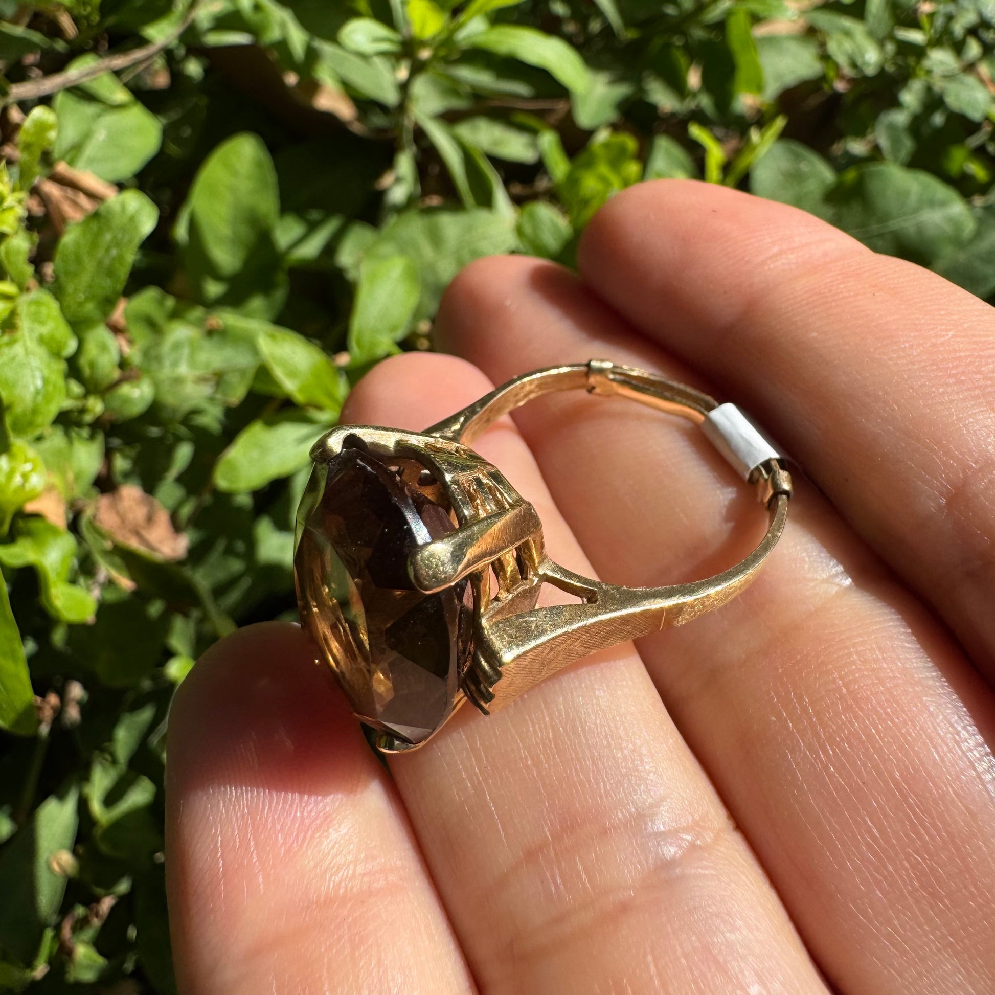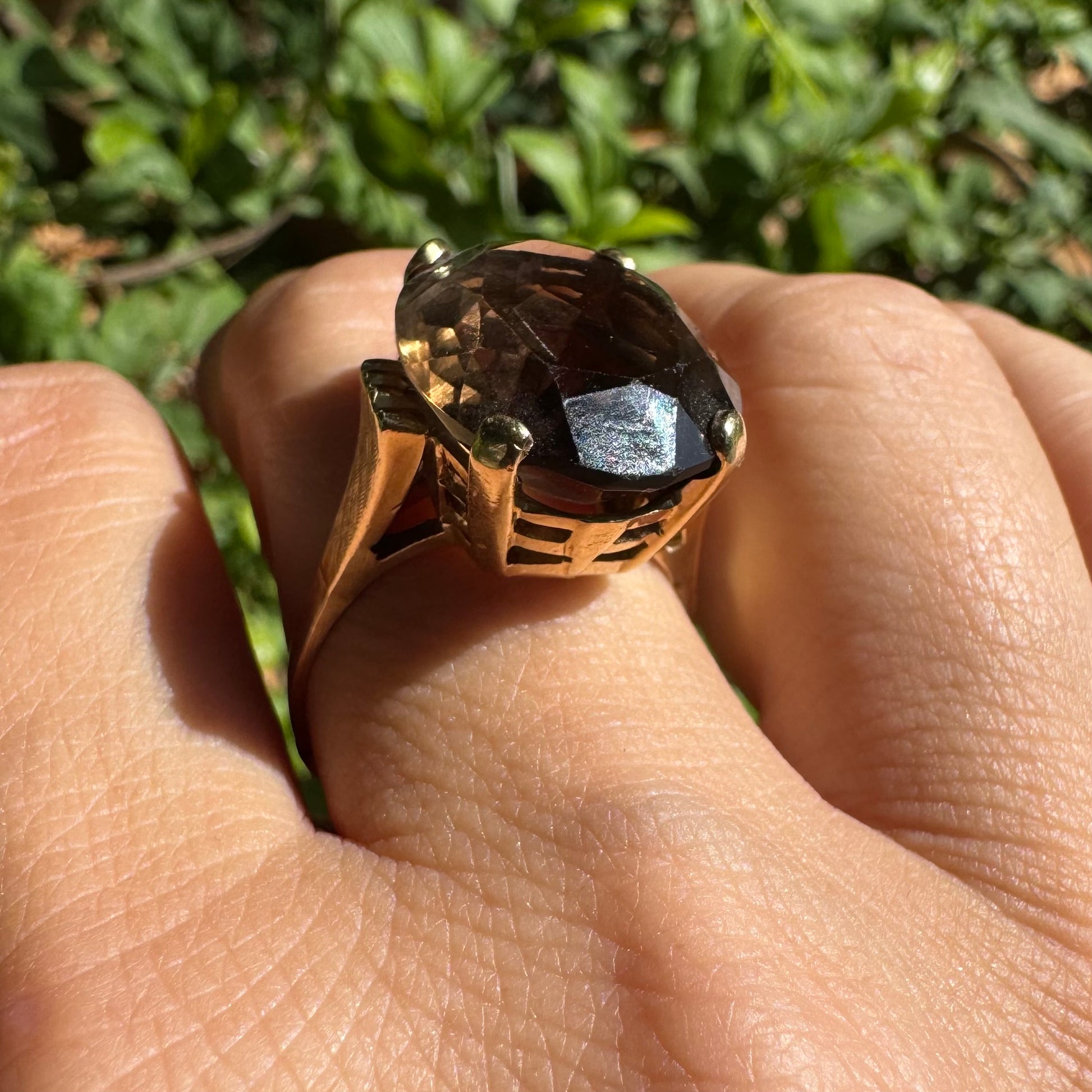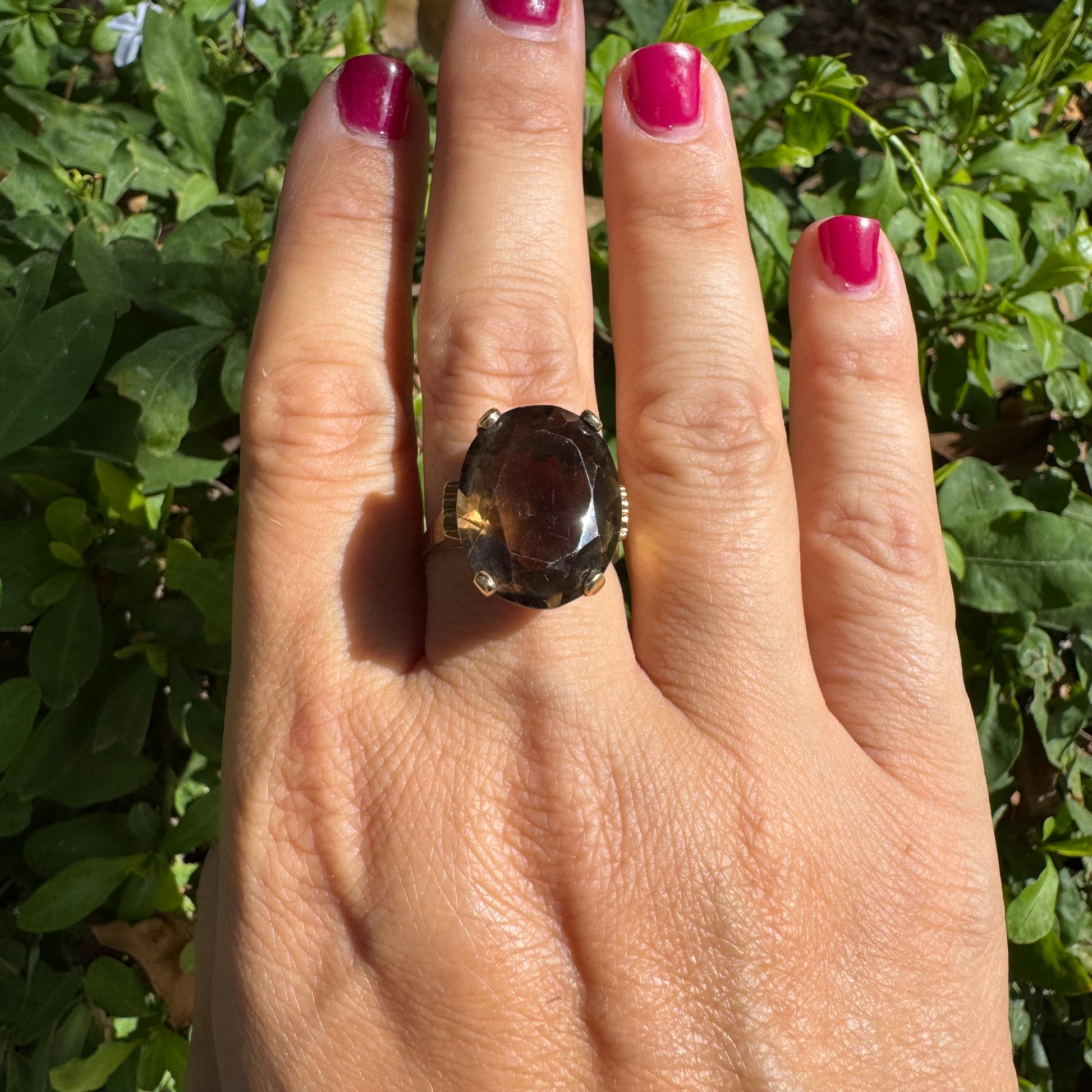 14K gold ring set with a striking Smoky Quartz in a deep, mysterious brown hue