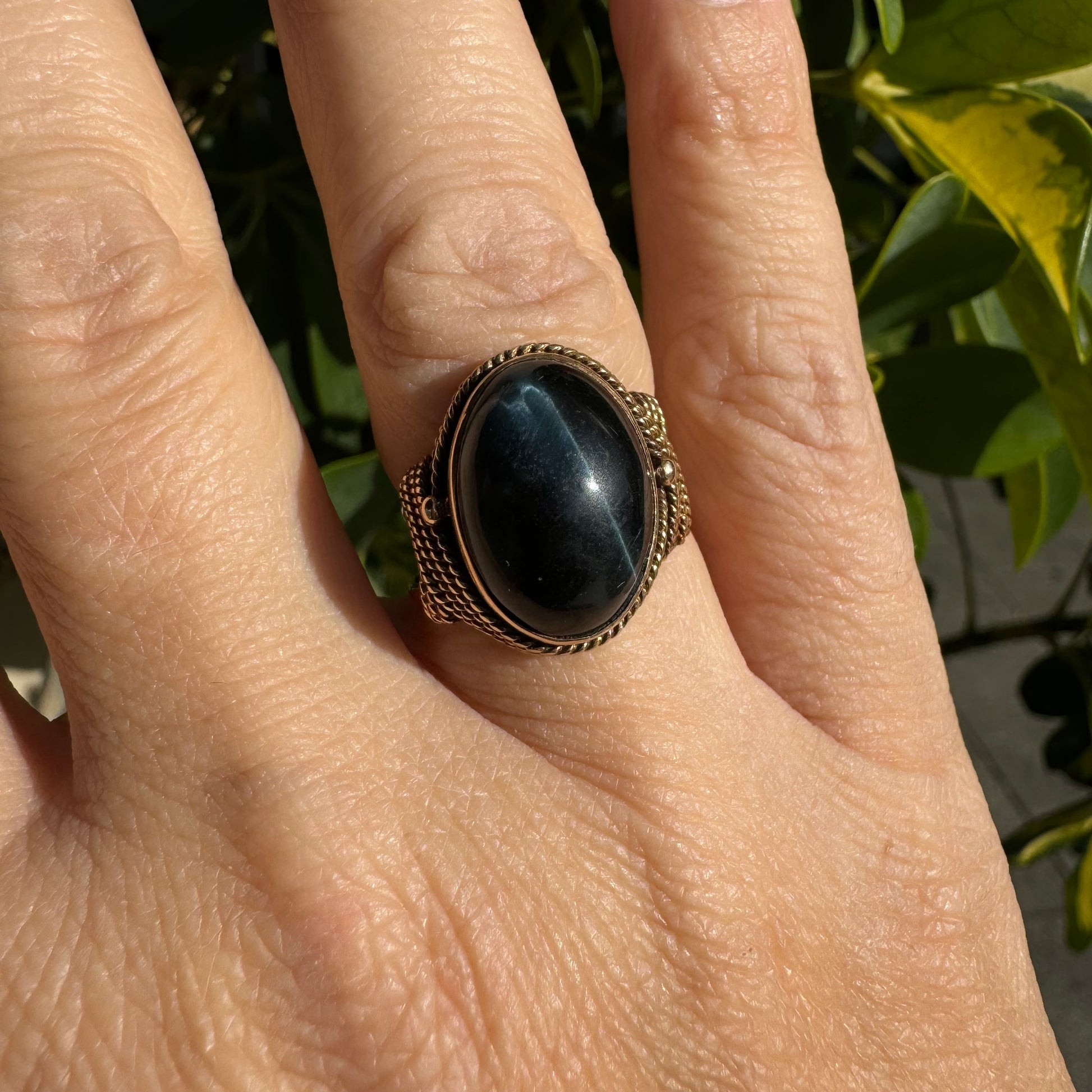 טבעת זהב אדום 14 קראט משובצת אבן ג׳ייד שחורה