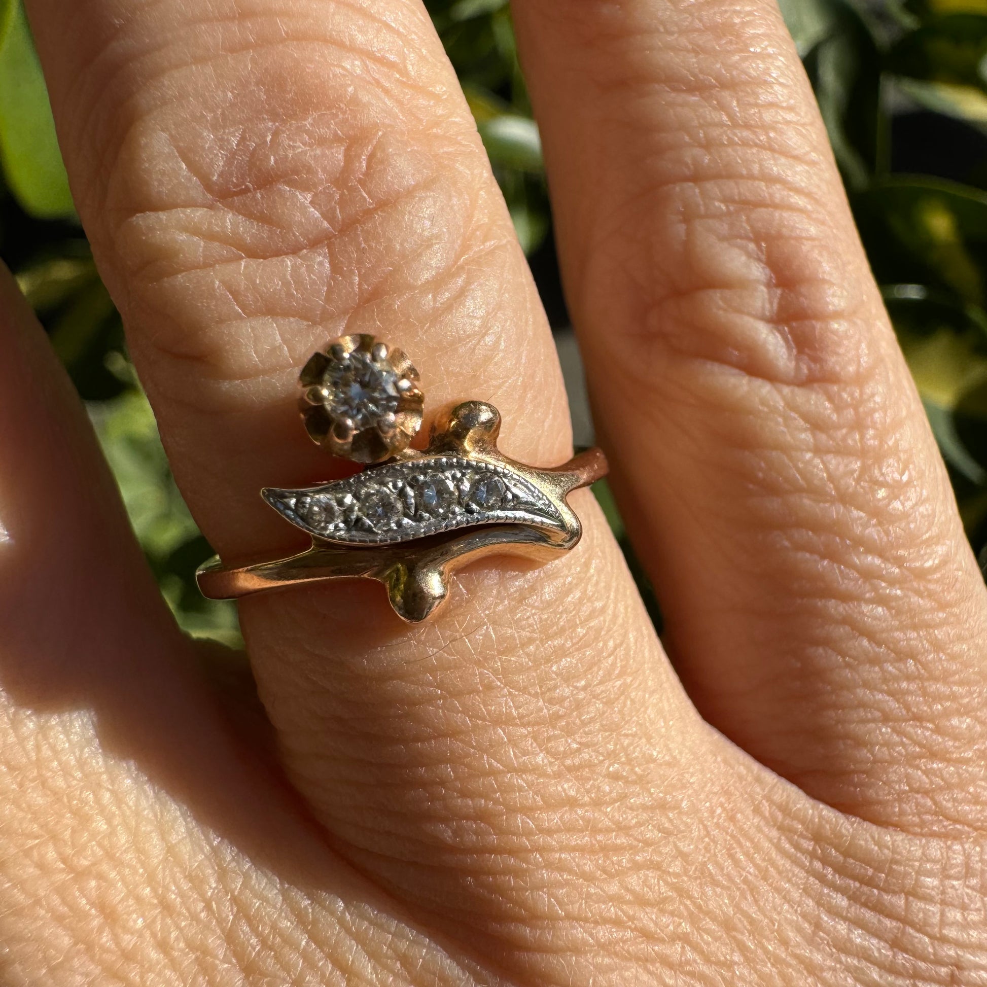 טבעת זהב אדום 14 קראט משובצת יהלומים