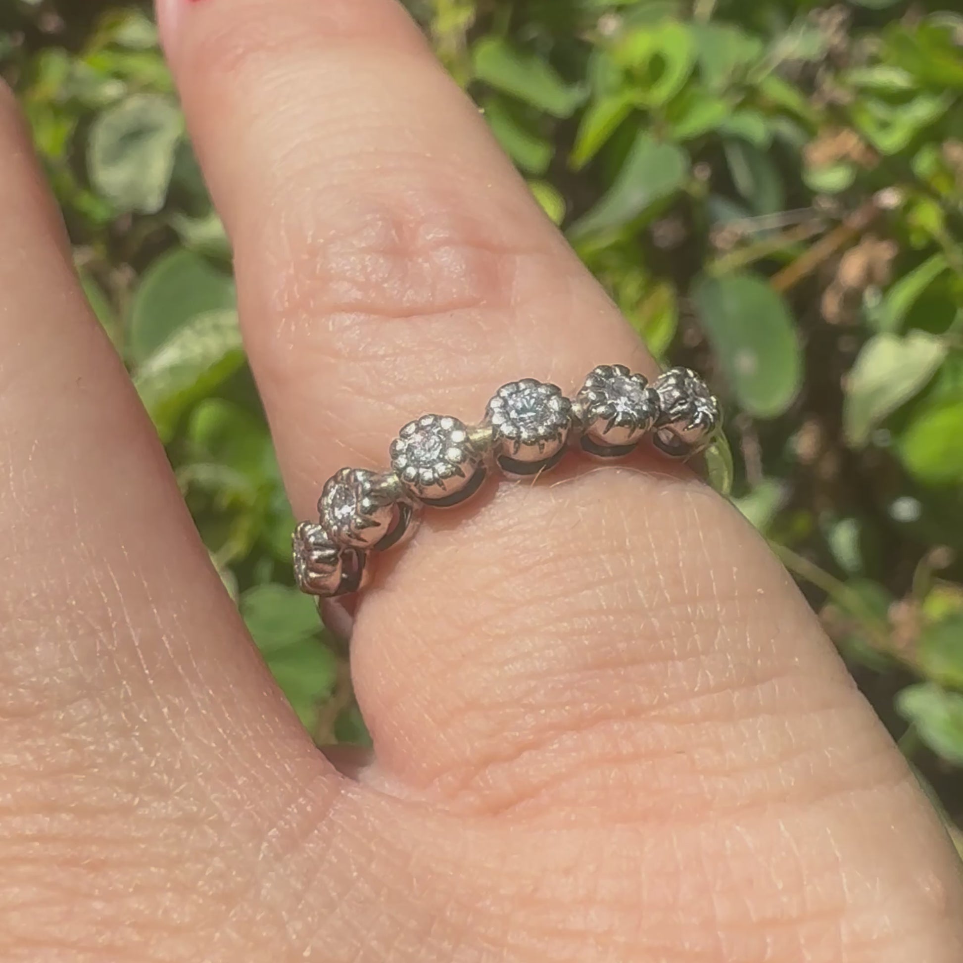 טבעת זהב לבן 14 קראט משובצת יהלומים