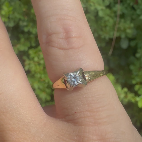 טבעת זהב צהוב 14 קראט משובצת יהלום מרכזי
