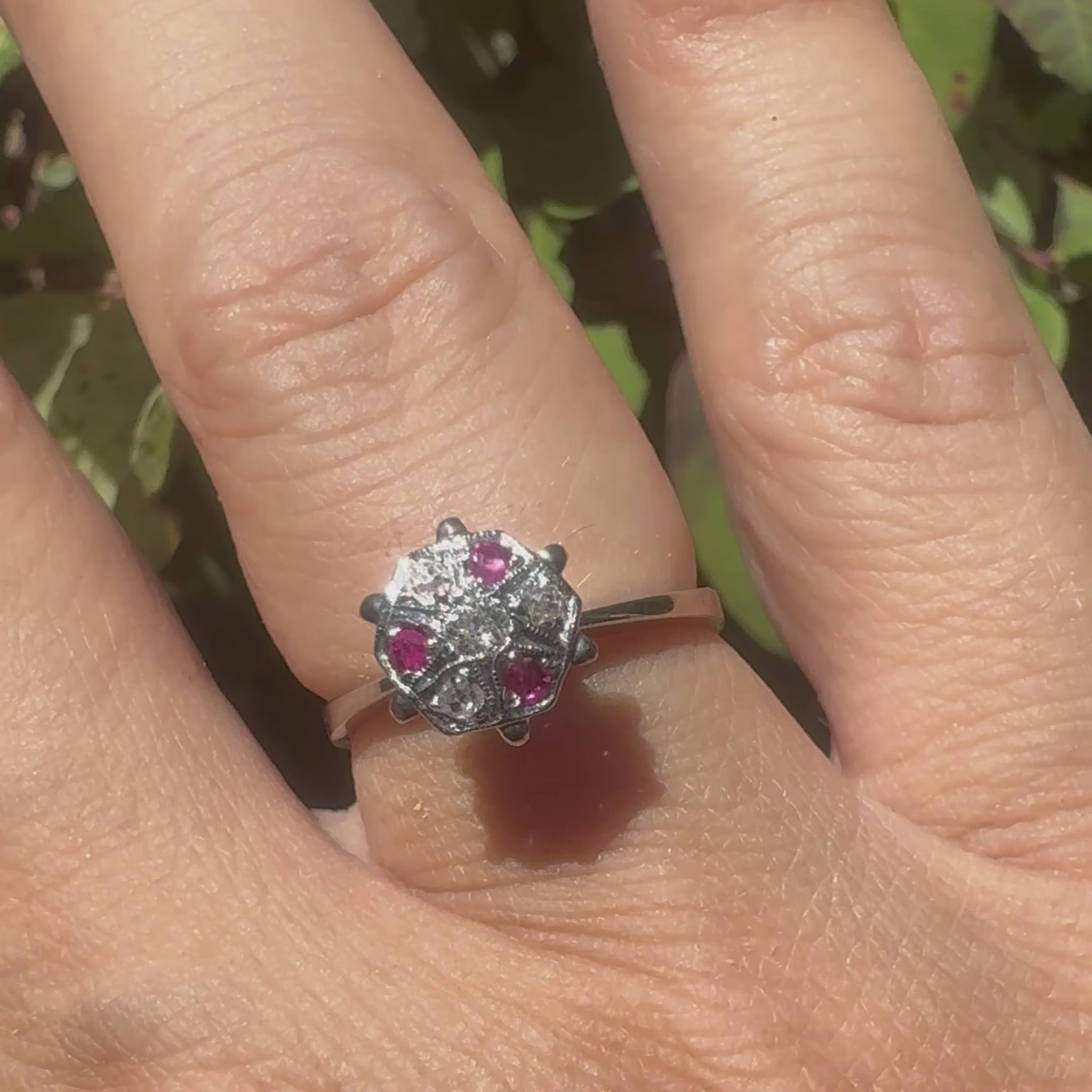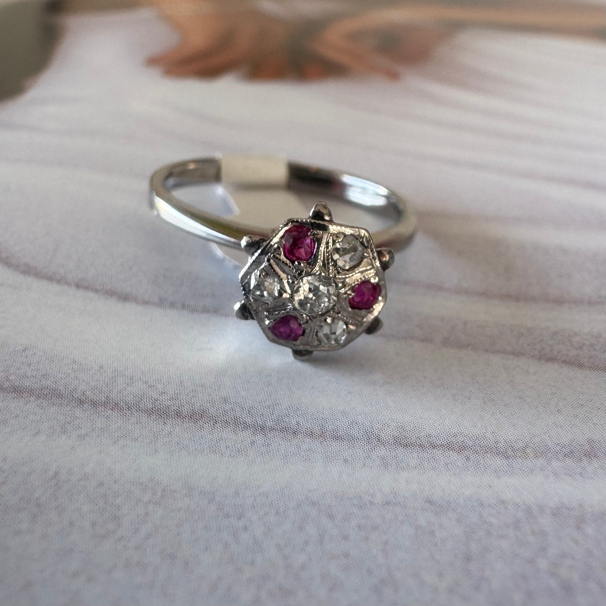 14K white gold ring set with Ruby & Diamonds