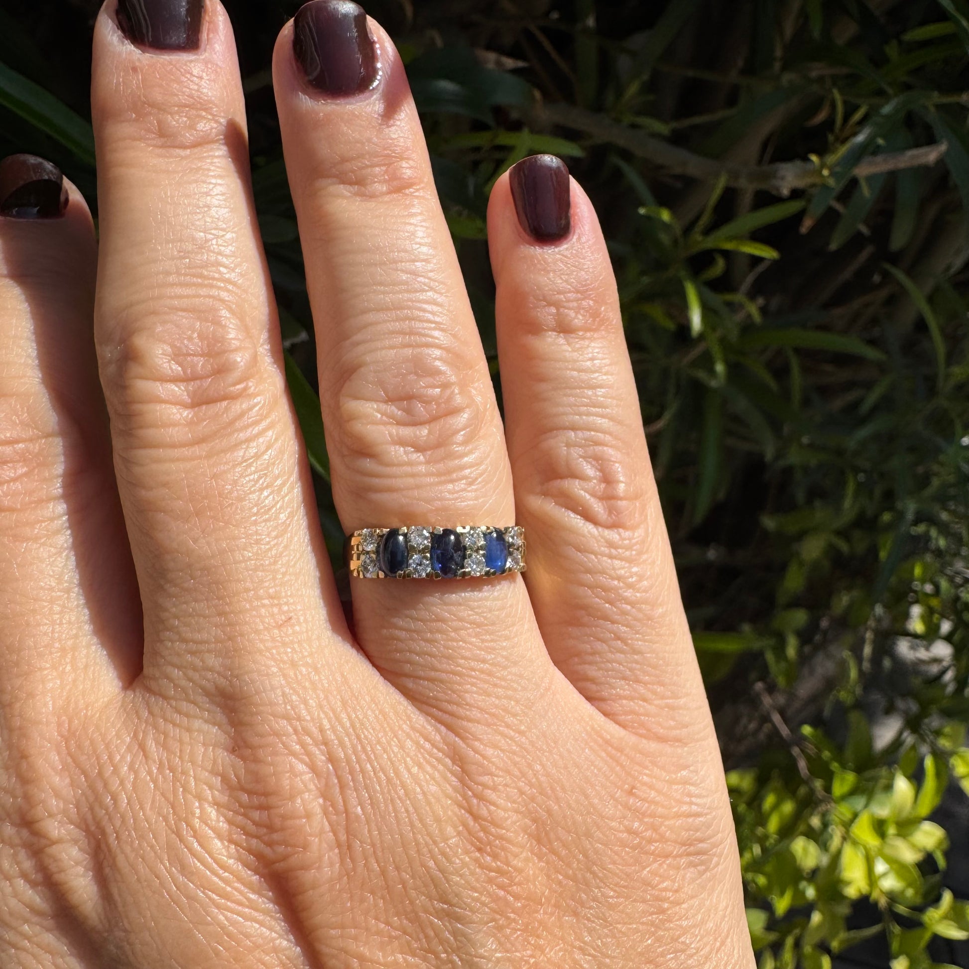 14K gold ring set with Sapphire & Diamonds