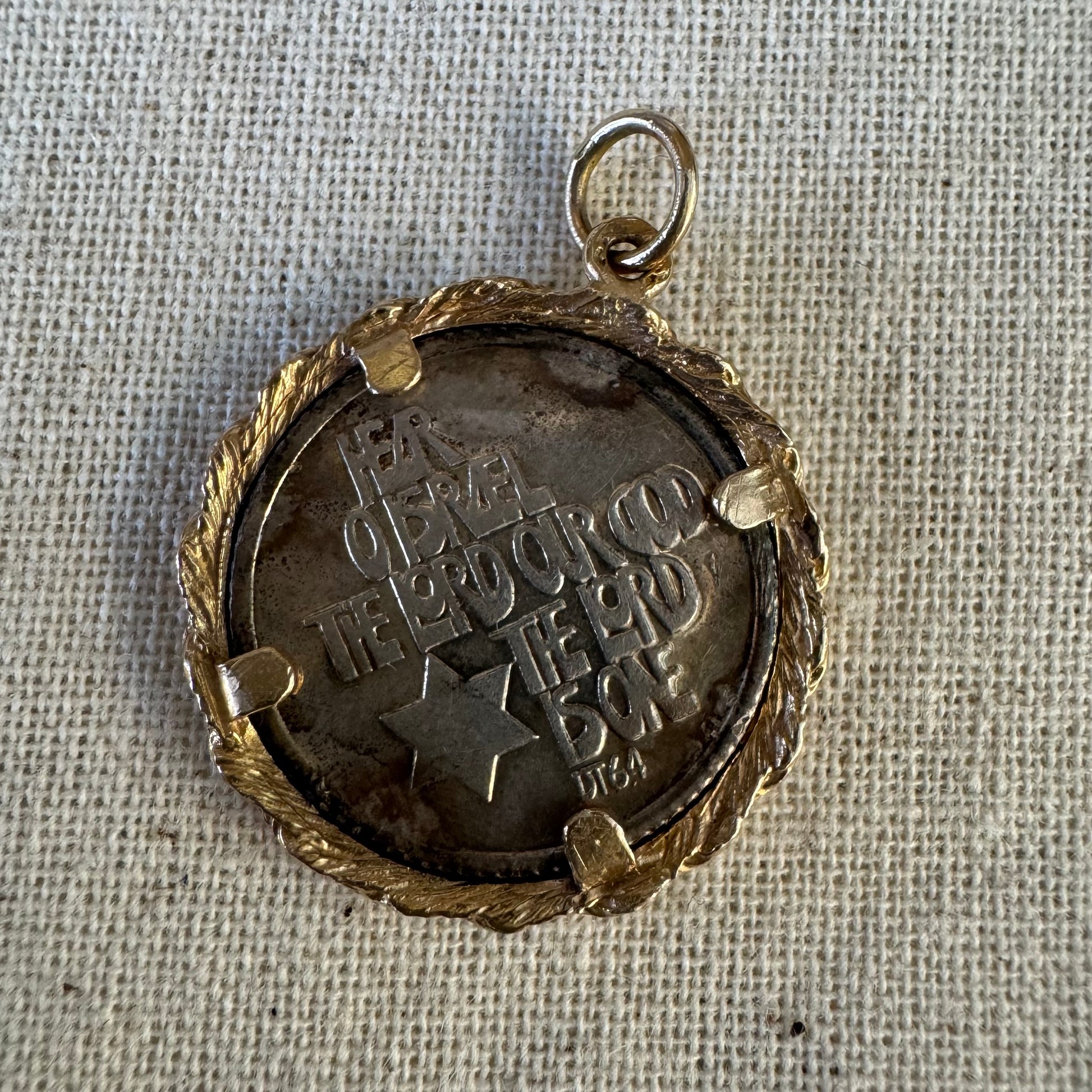 תליון זהב צהוב 14 קראט מטבע ״שמע ישראל״
