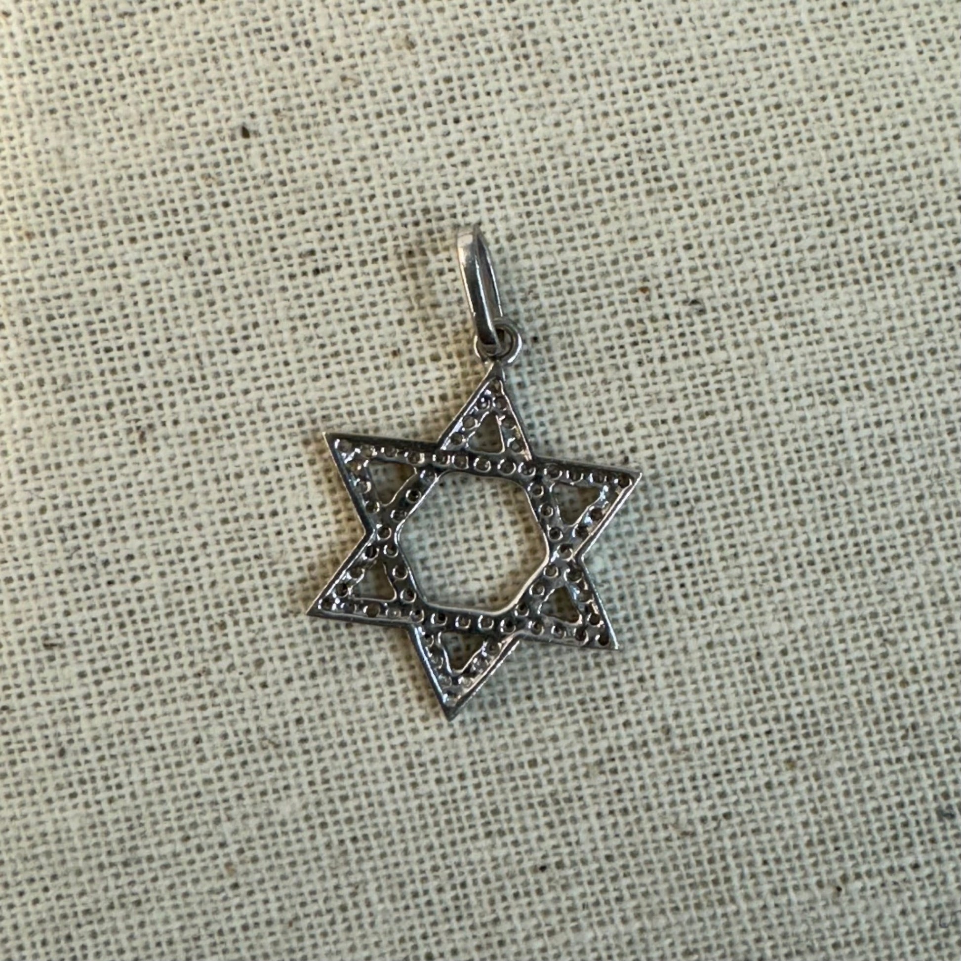 תליון זהב לבן 14 קראט ״מגן דוד״ משובץ יהלומים