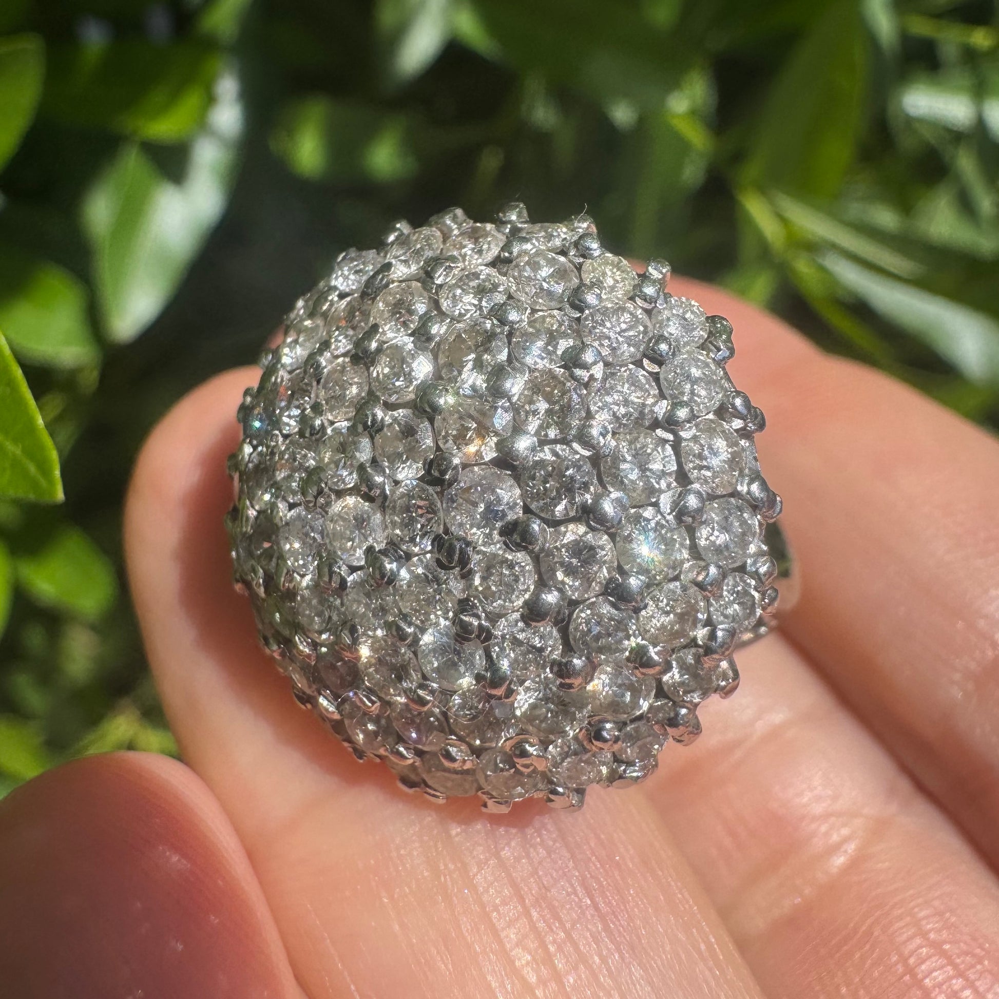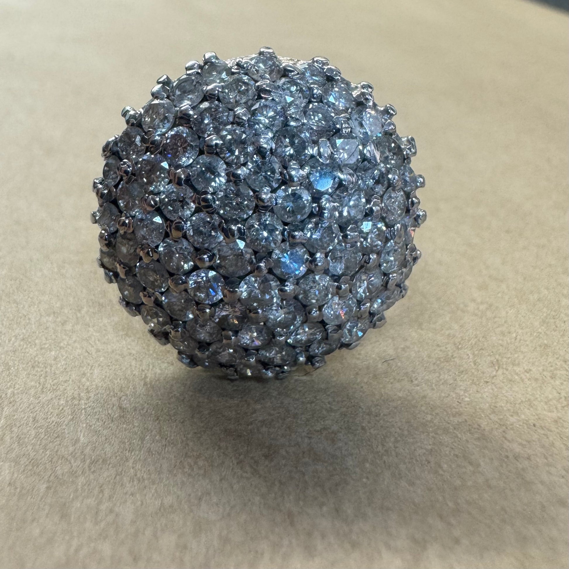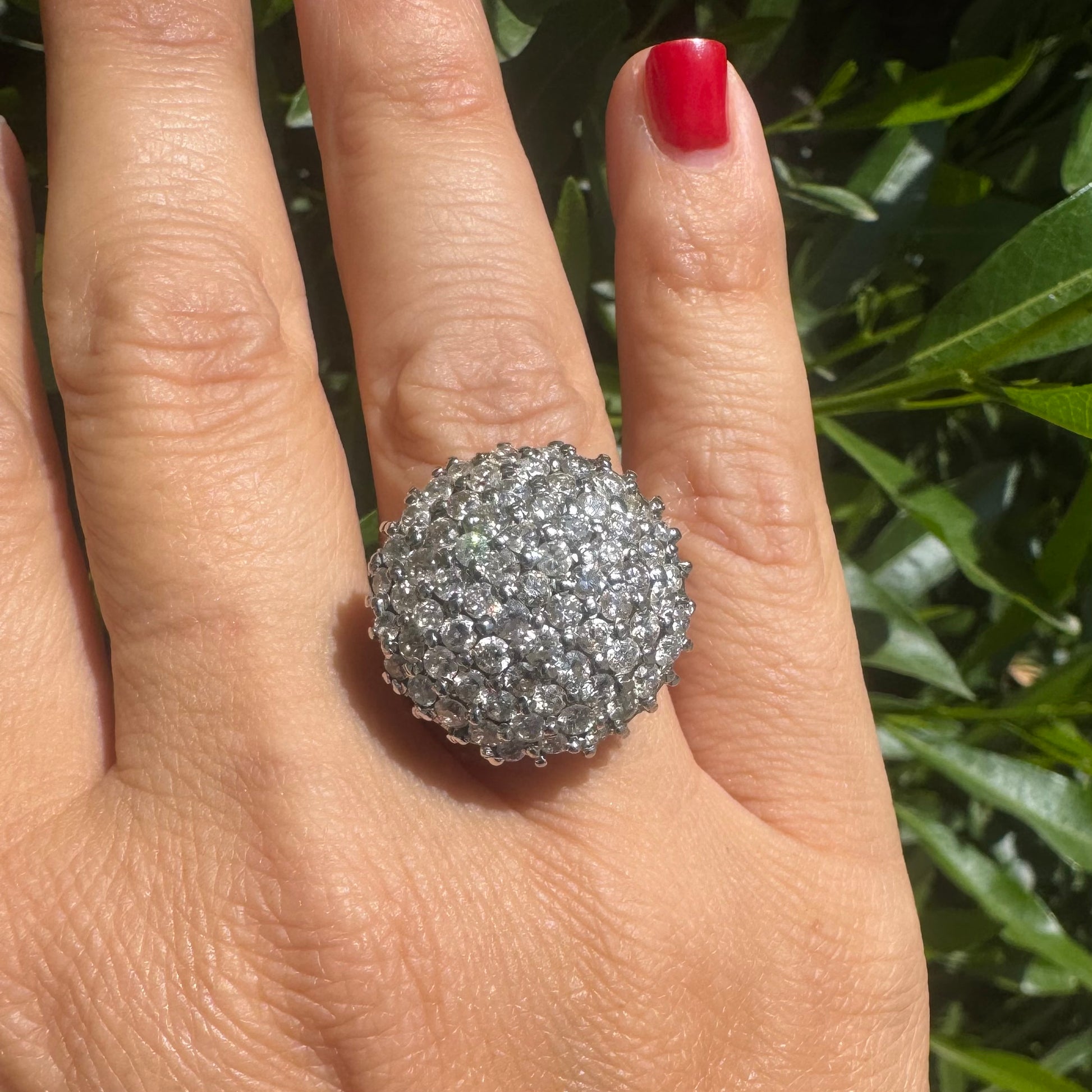 טבעת זהב לבן 18 קראט משובצת יהלומים באפקט פאבה שבו האבנים משובצות בצורה צפופה ומכסות את כל השטח