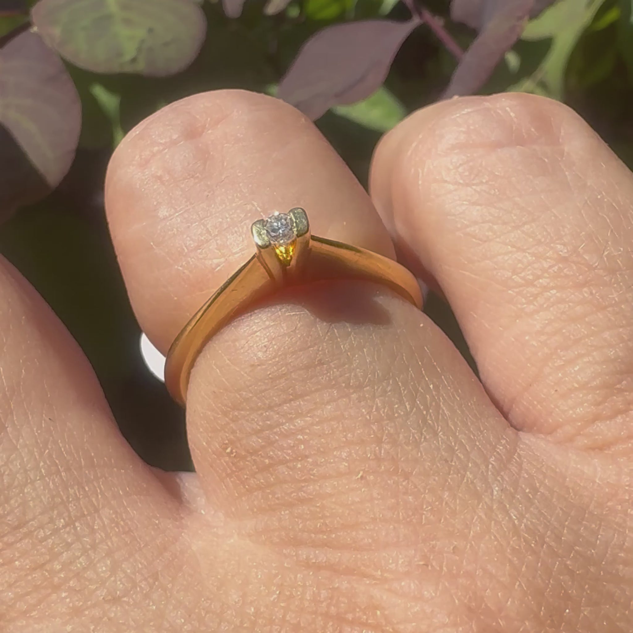 טבעת זהב צהוב 18 קראט משובצת יהלום מרכזי