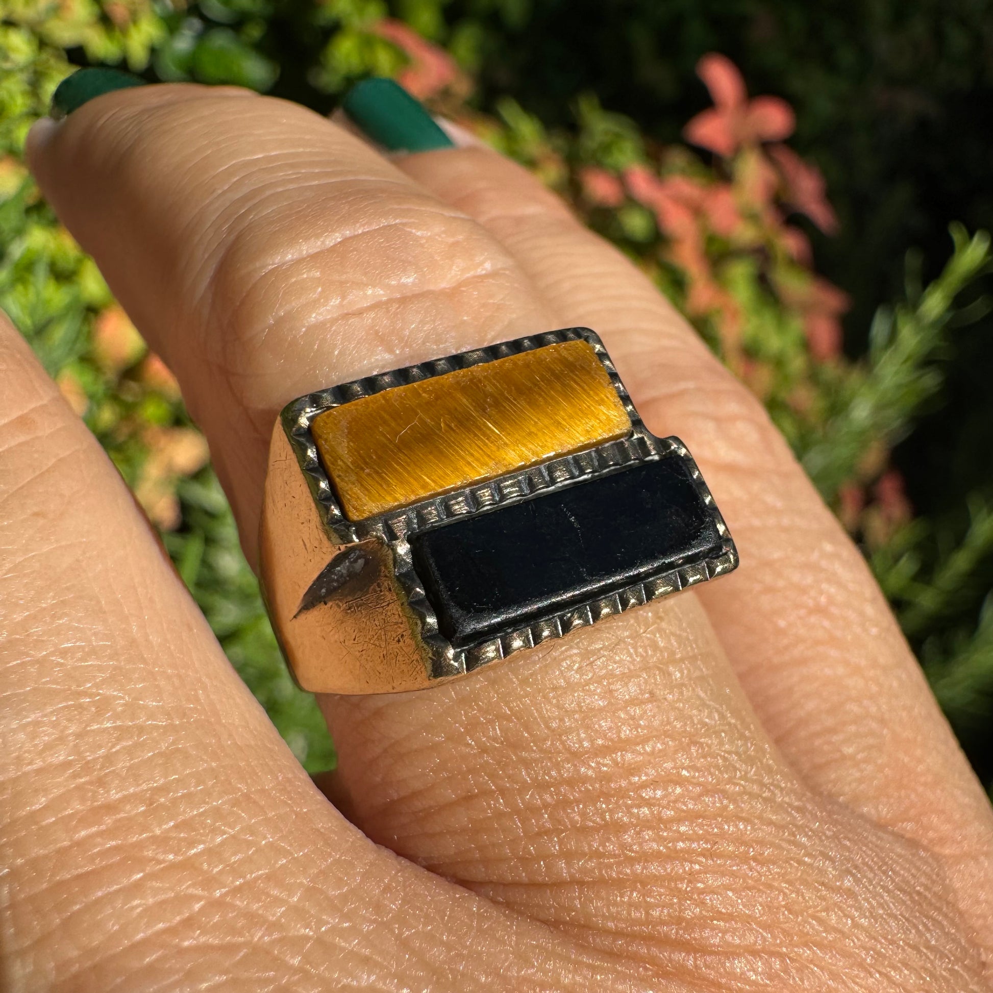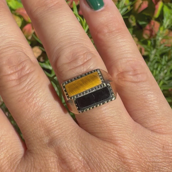 9K gold ring set with Onyx & Tiger Eye
