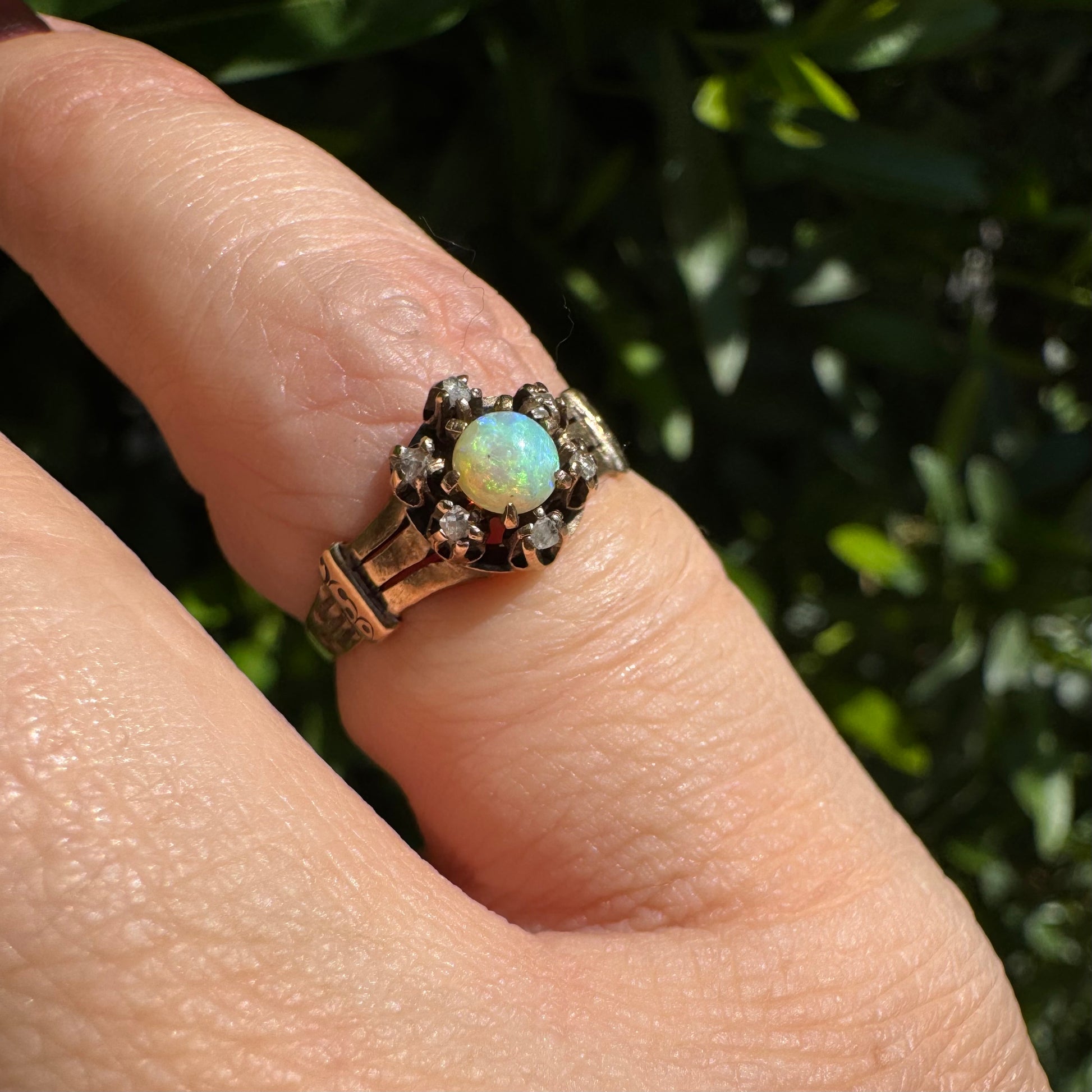 טבעת זהב צהוב 9 קראט משובצת אבן אופל במרכז