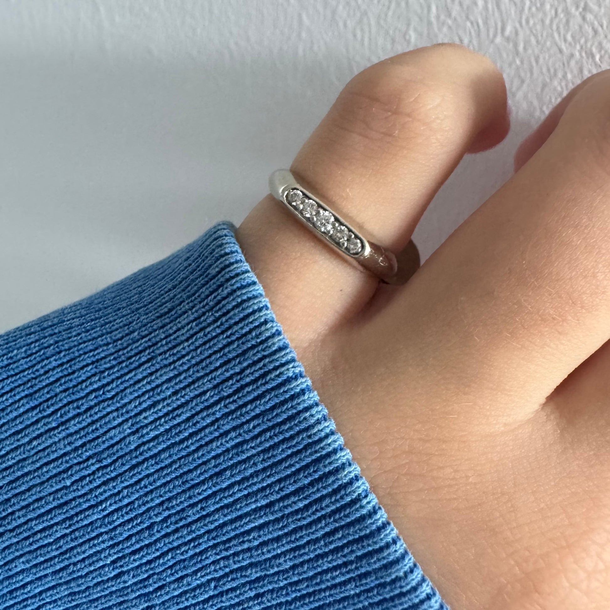 טבעת אלגנטית, מינימליסטית ועל-זמנית, מושלמת לשילוב עם טבעות נוספות או לענידה בפני עצמה.