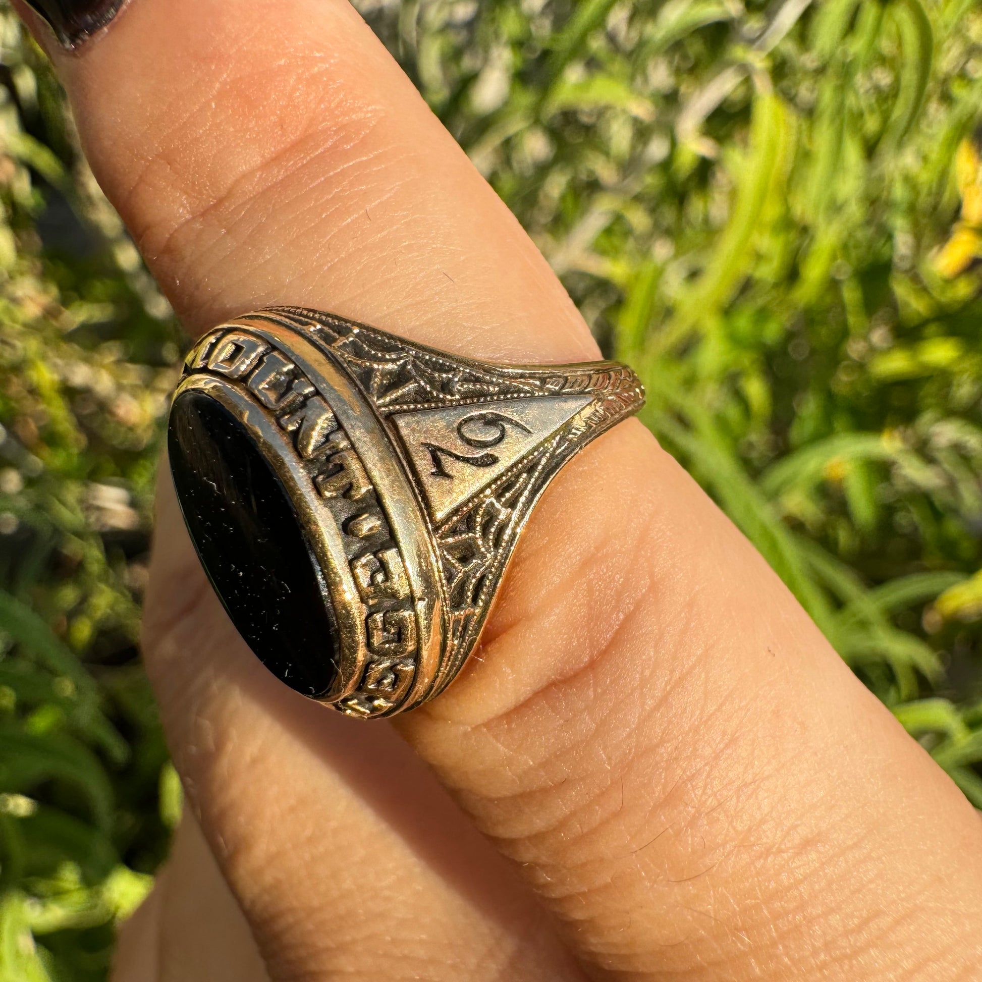 טבעת זהב צהוב 10 קראט משובצת אוניקס שחורה