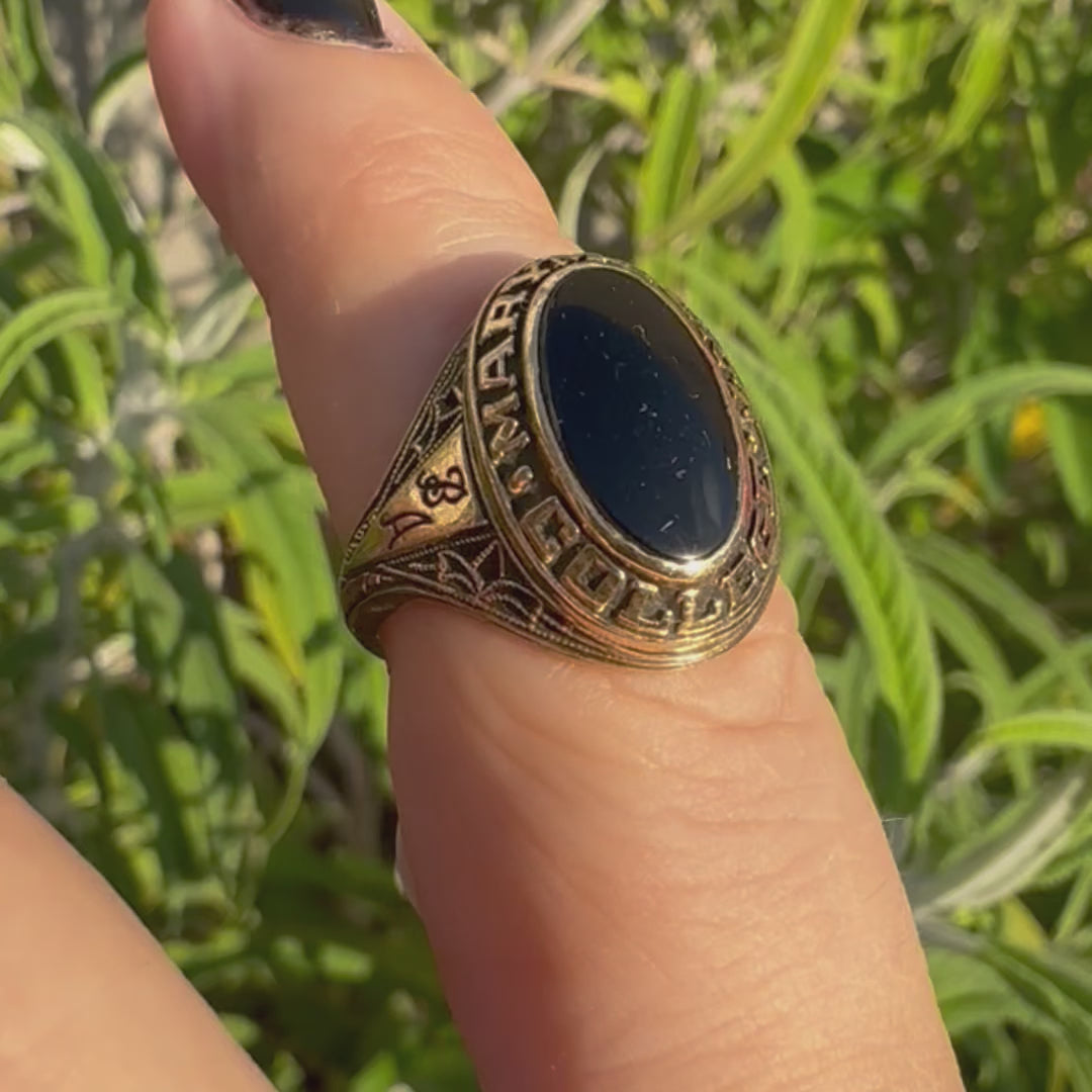 טבעת זהב צהוב 10 קראט משובצת אבן אוניקס שחורה