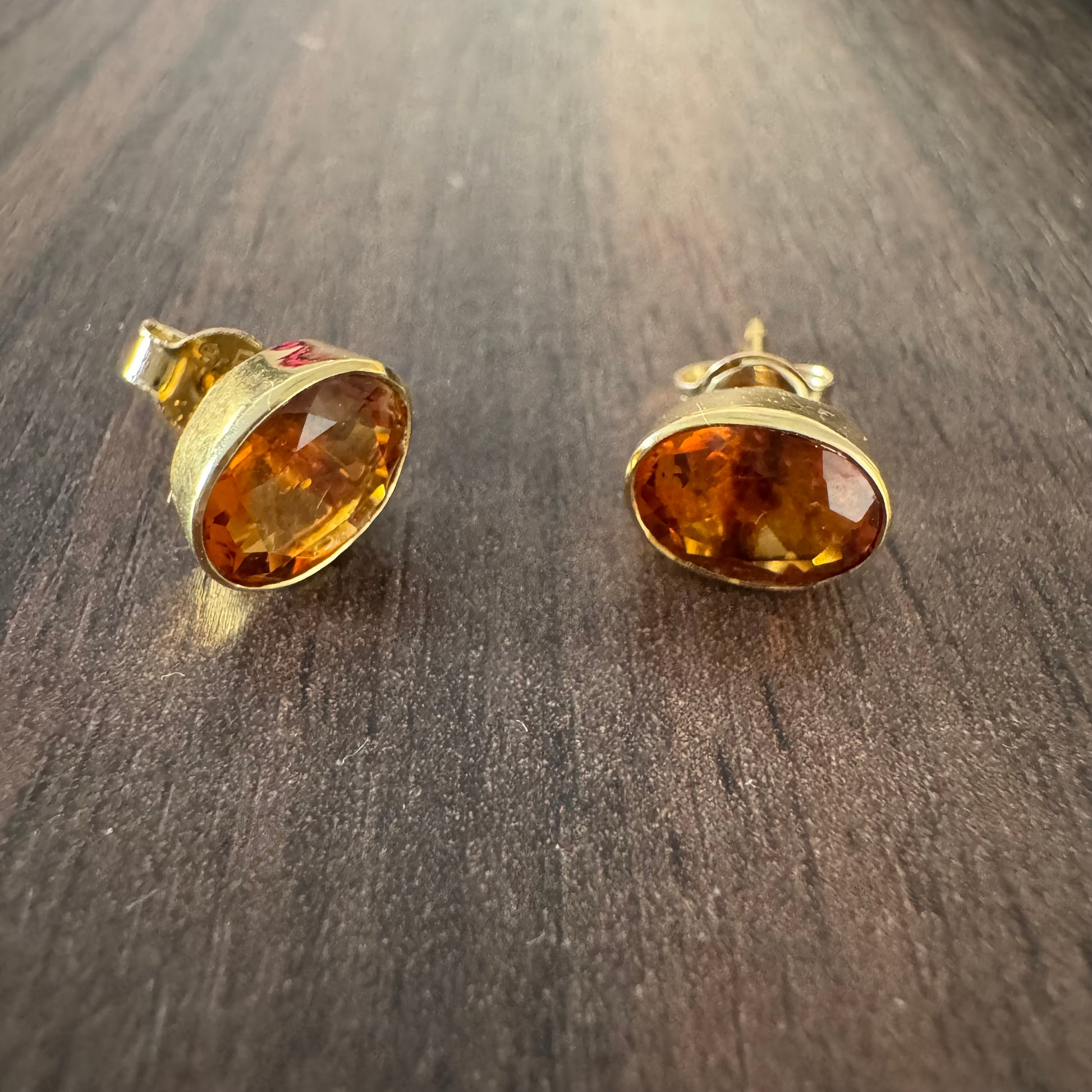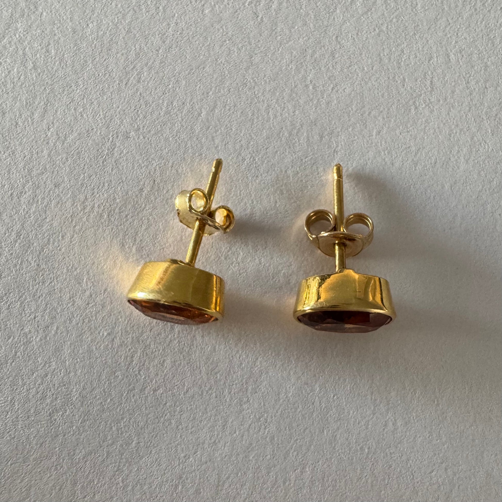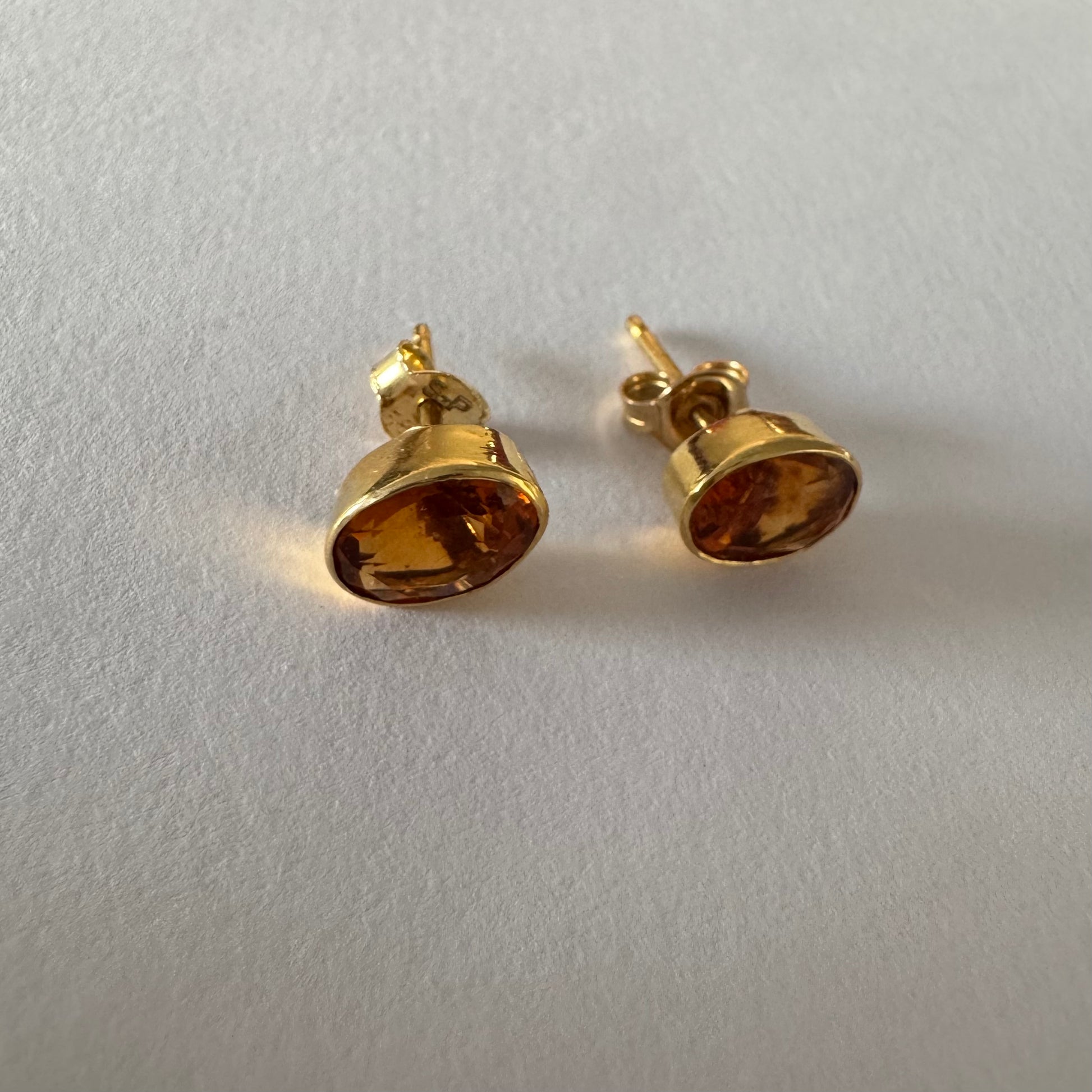 עגילי זהב צהוב 14 קראט משובצים אבני סיטרין כתומות ומבריקות.