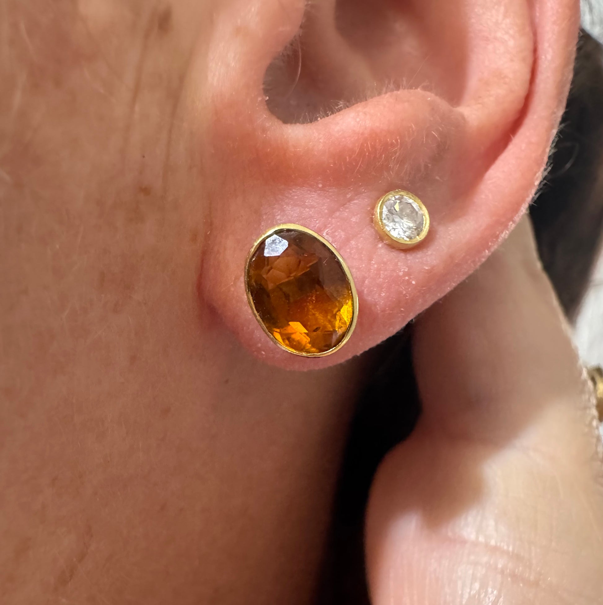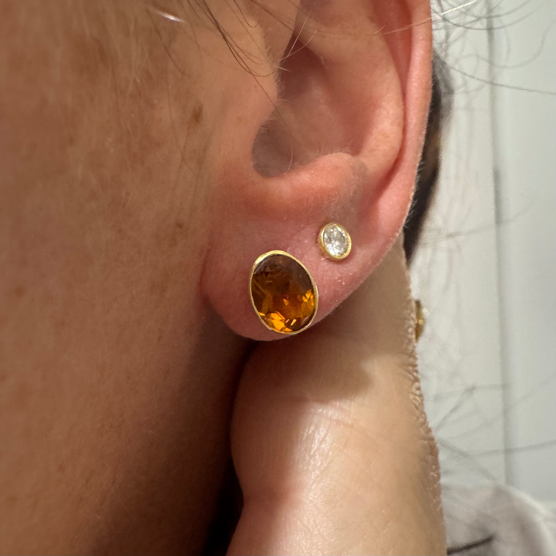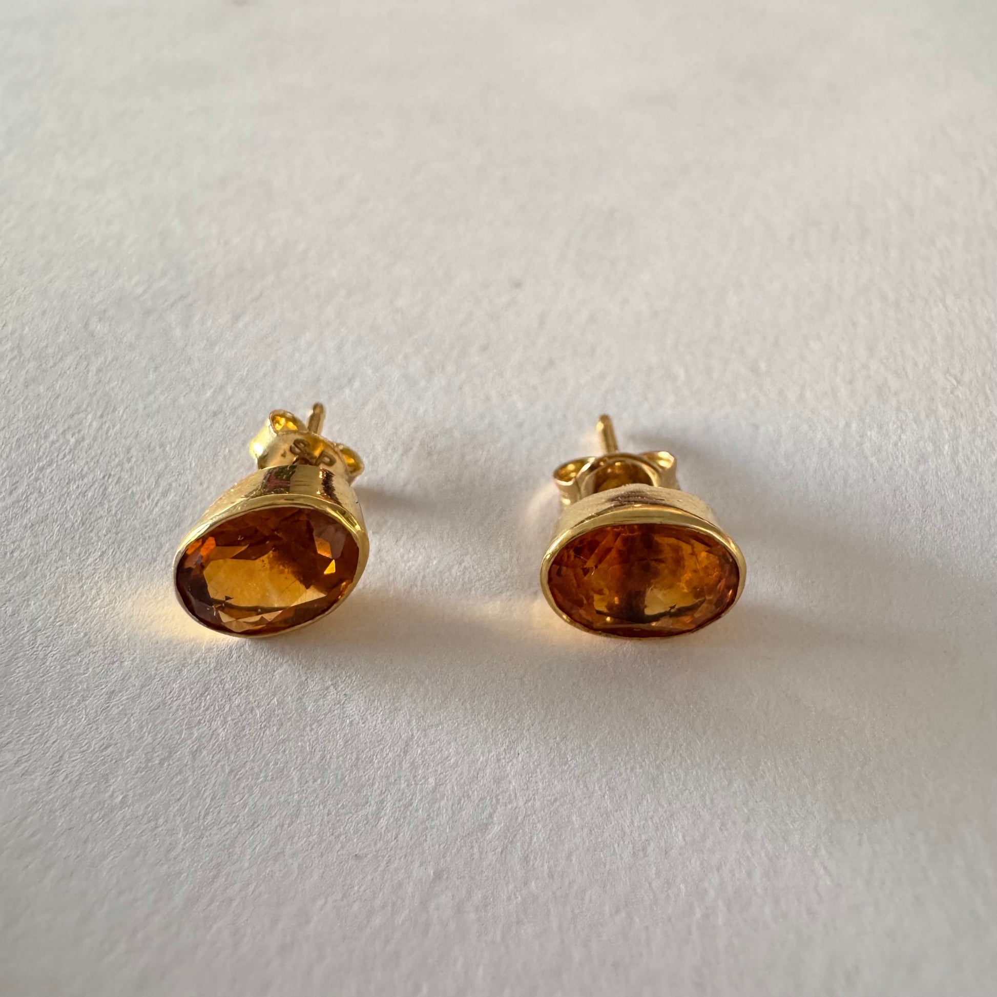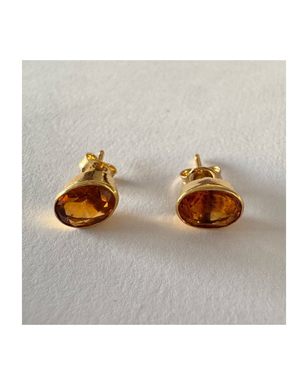 עגילי זהב צהוב 14 קראט משובצים אבני סיטרין כתומות ומבריקות.