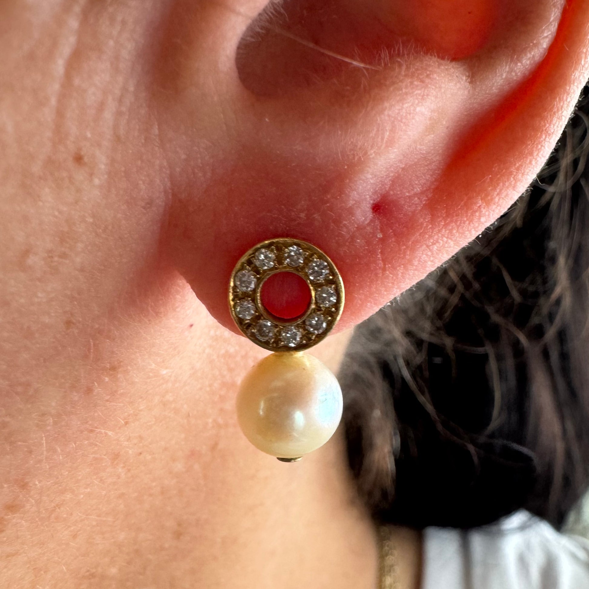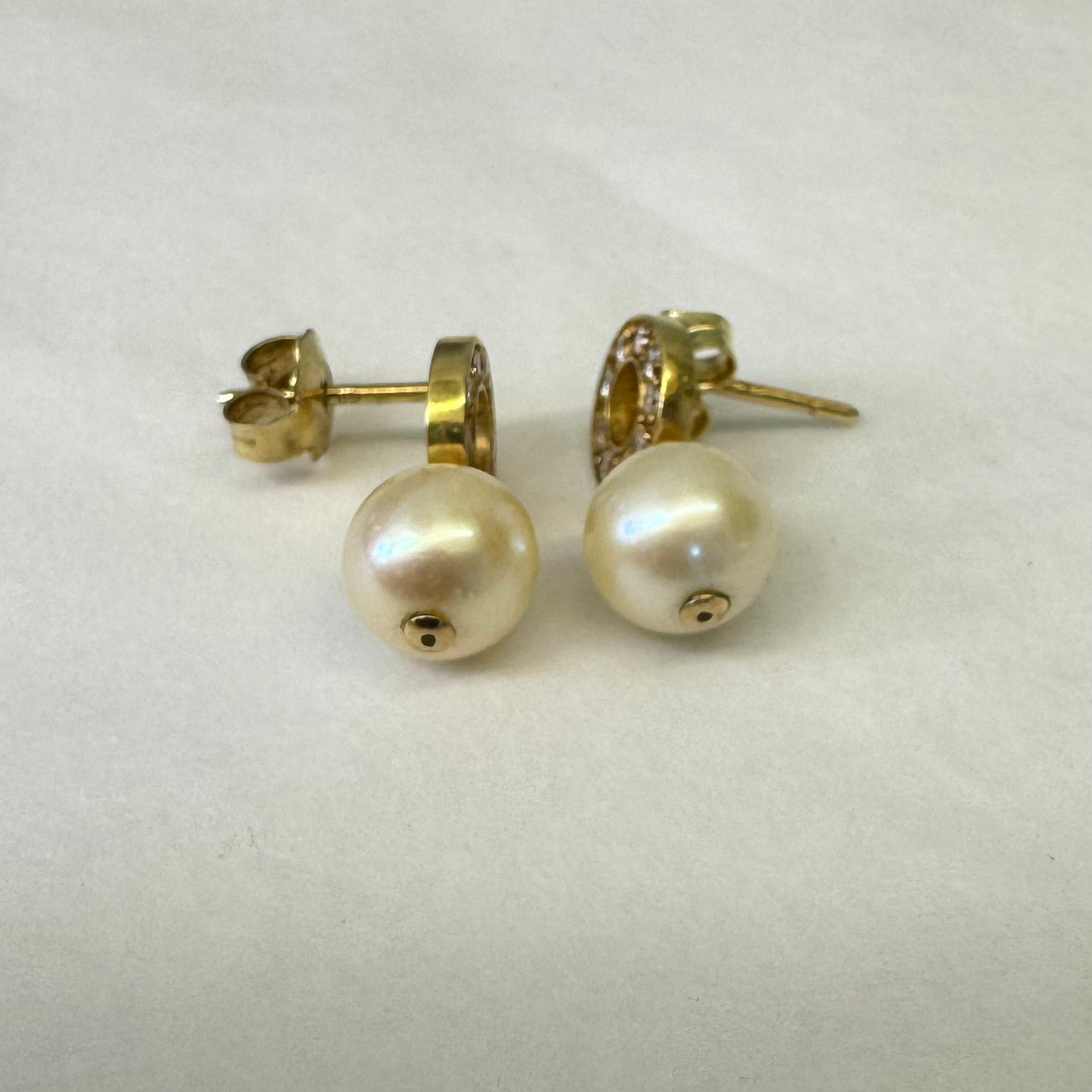 שילוב מקסים של יוקרה ואלגנטיות מודרנית – עגילי זהב עם חישוק קטן משובץ יהלומים ופנינה קלאסית –למראה מושלם שמתאים גם לערב וגם ליום-יום