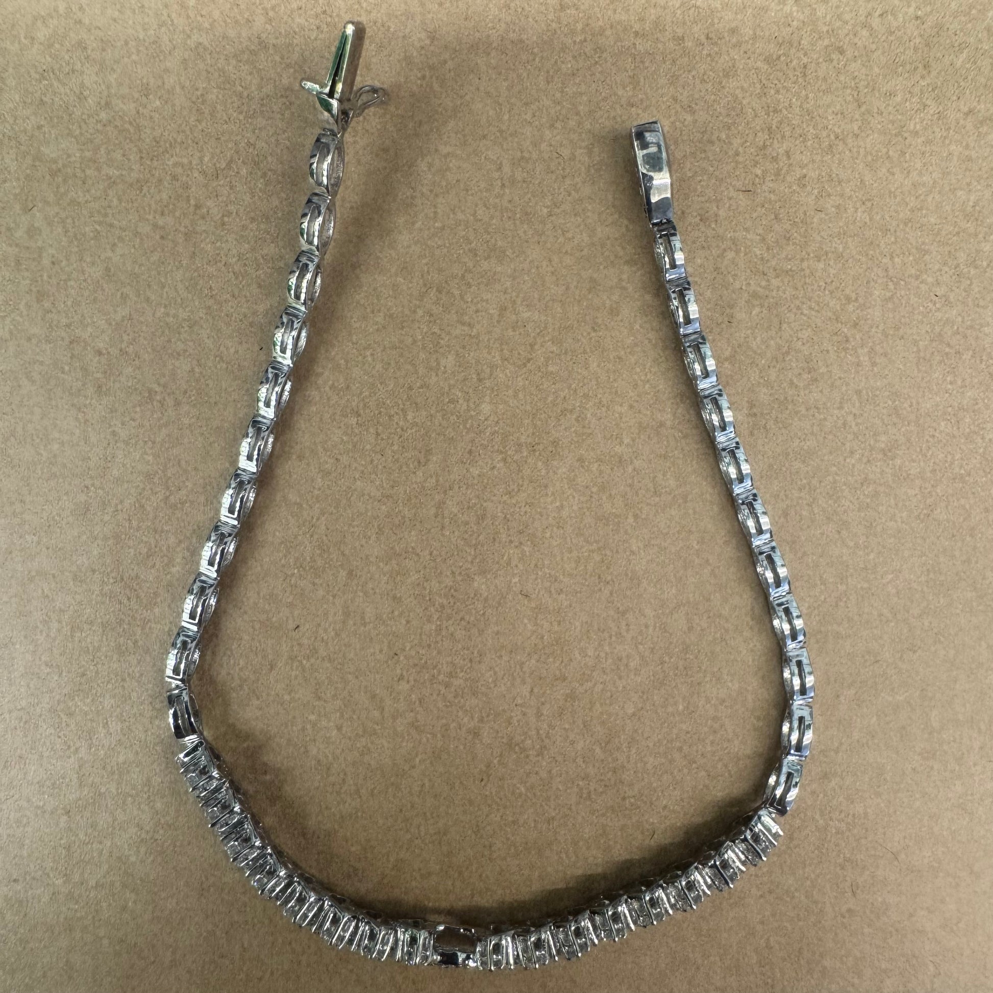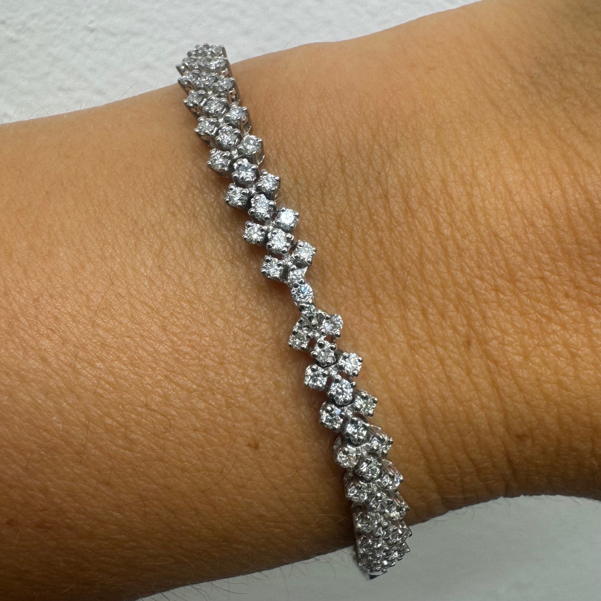 צמיד זהב לבן 14 קראט משובץ יהלומים לבנים בעיצוב פרחוני אלגנטי.