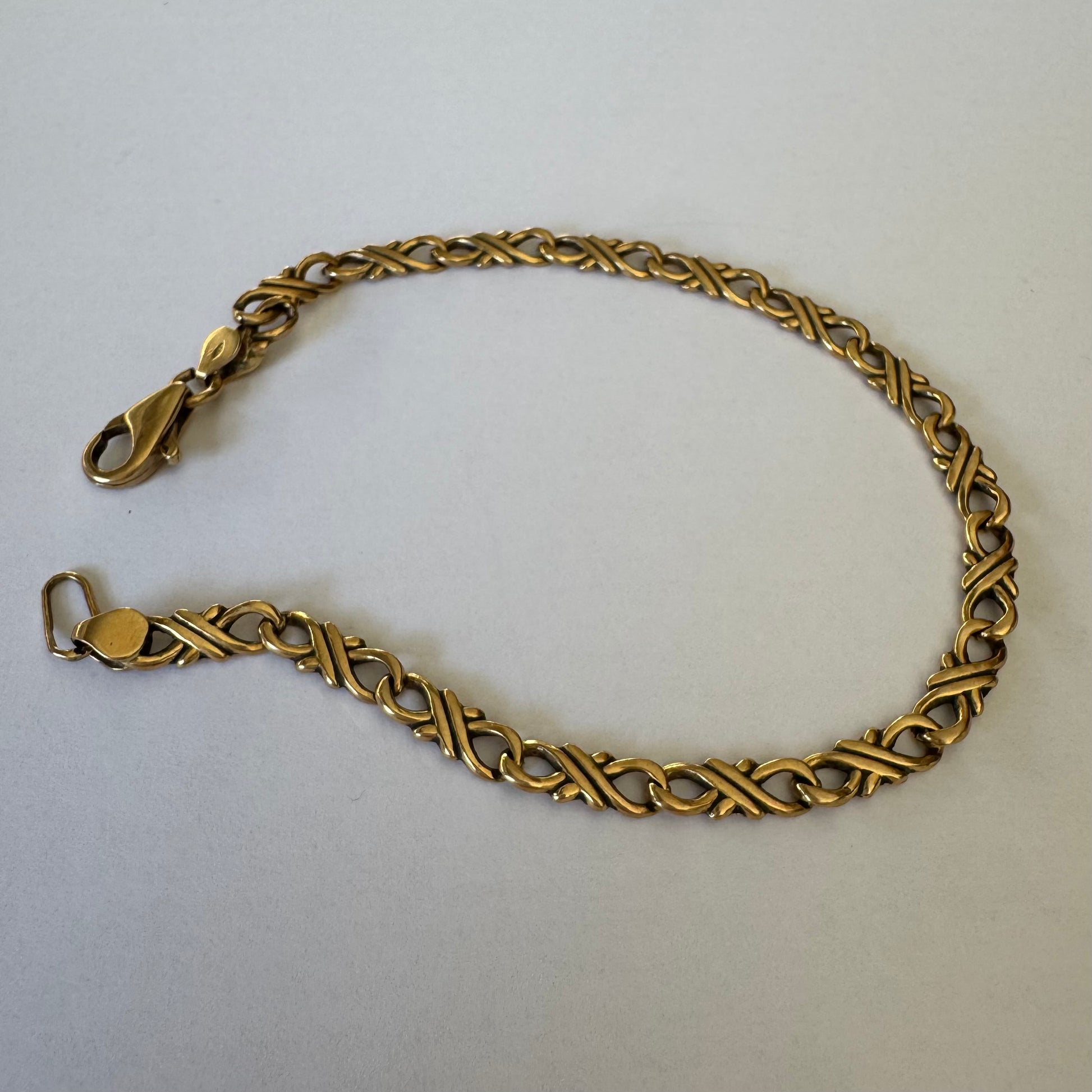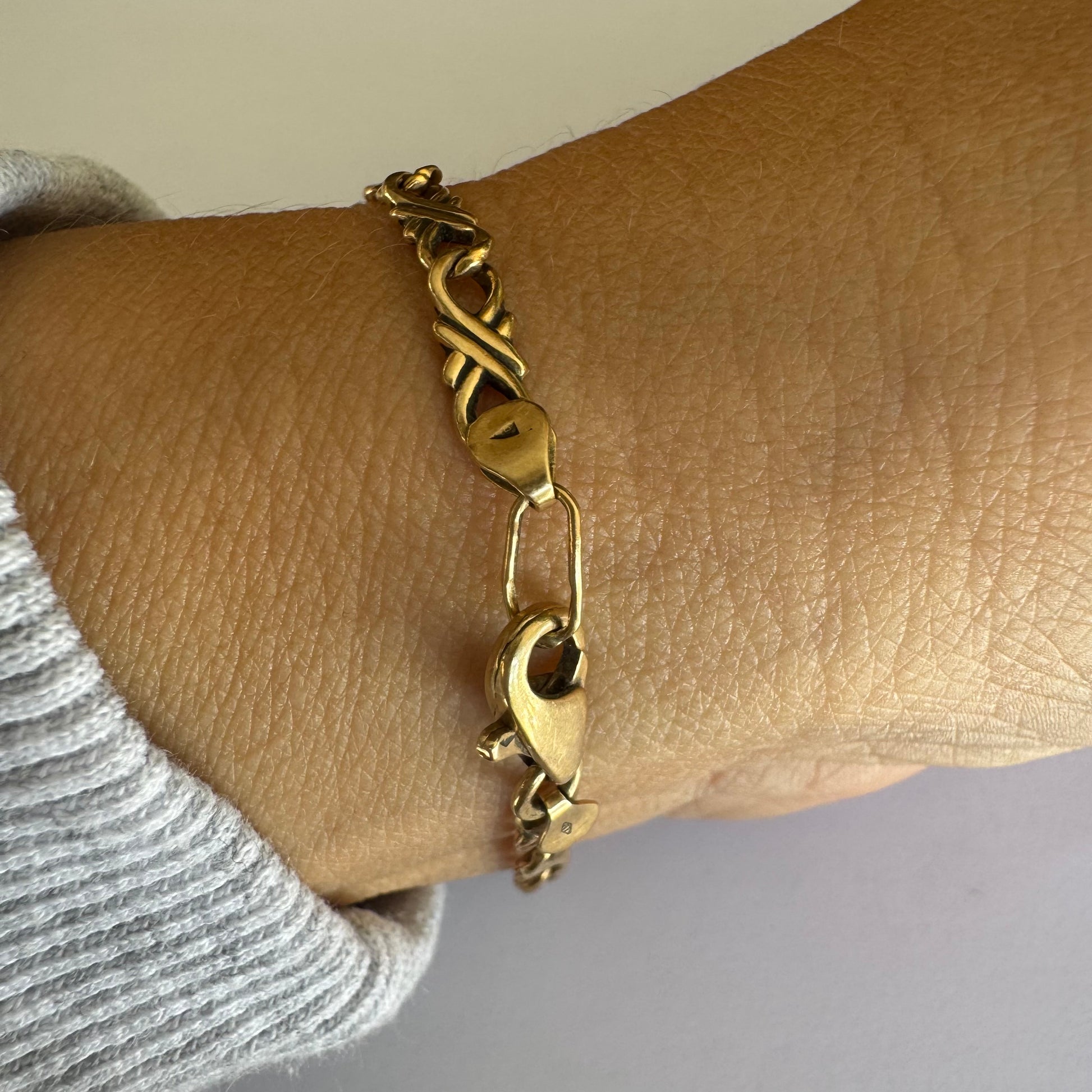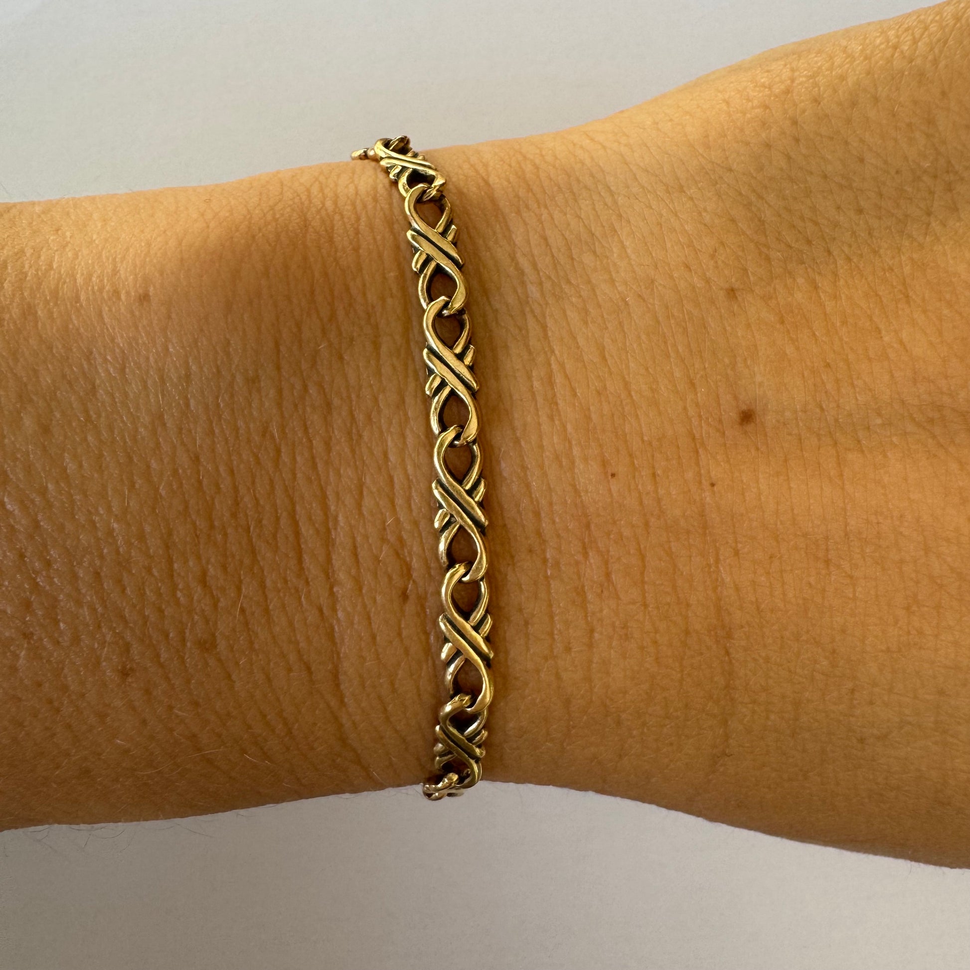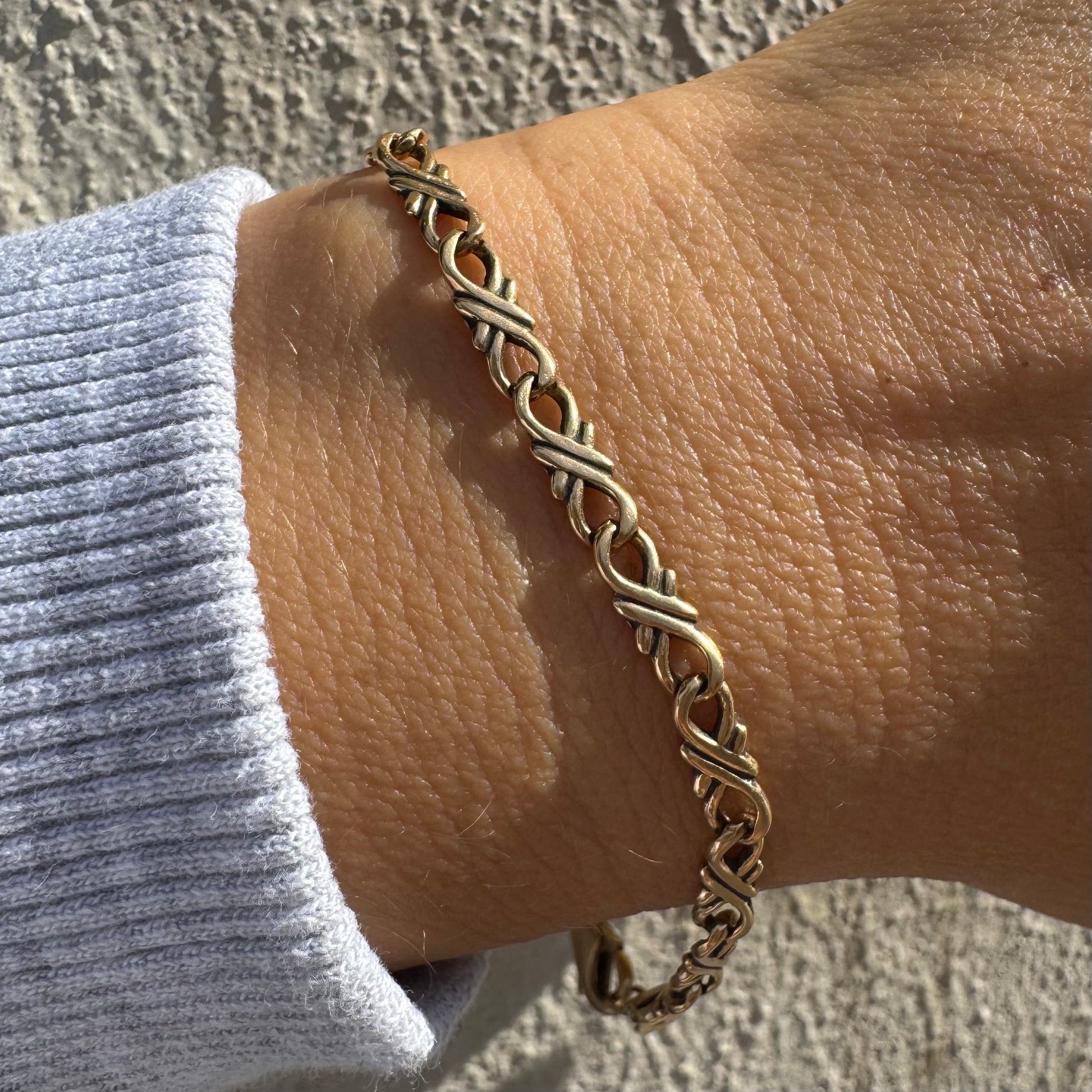צמיד זהב 14 קראט, בעיצוב חוליות עדין ומסולסל.