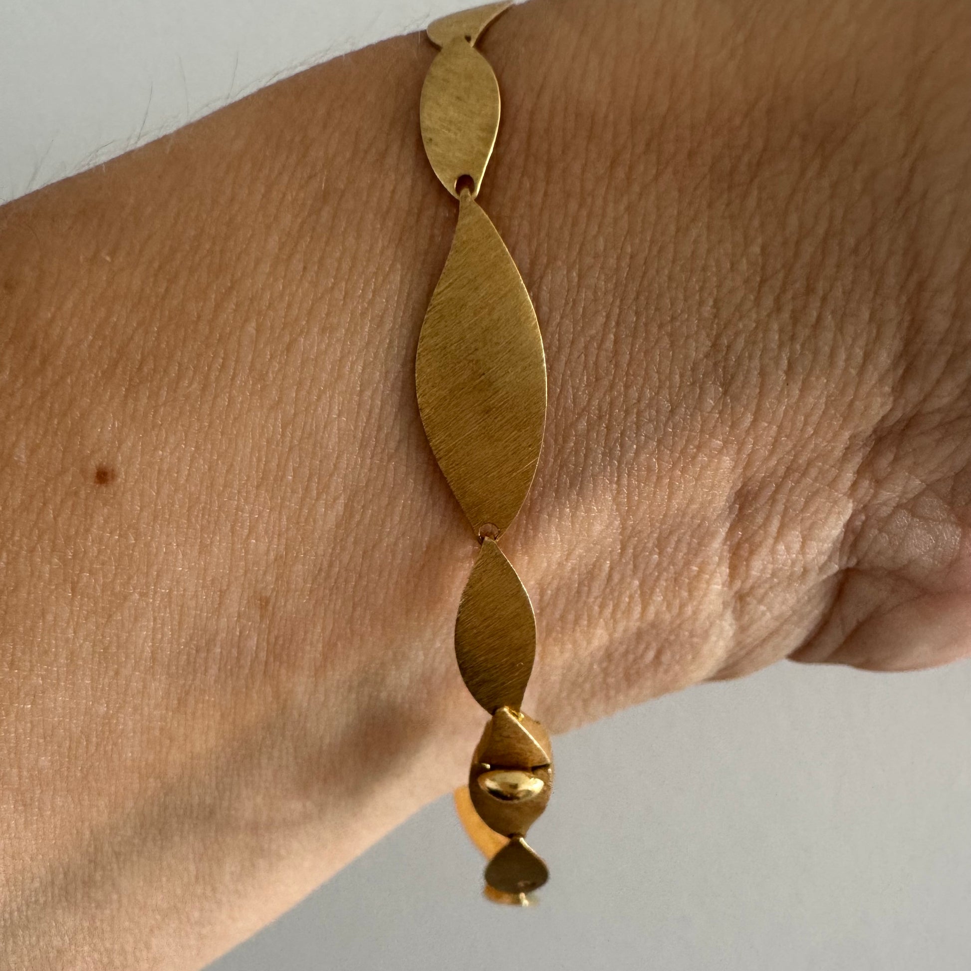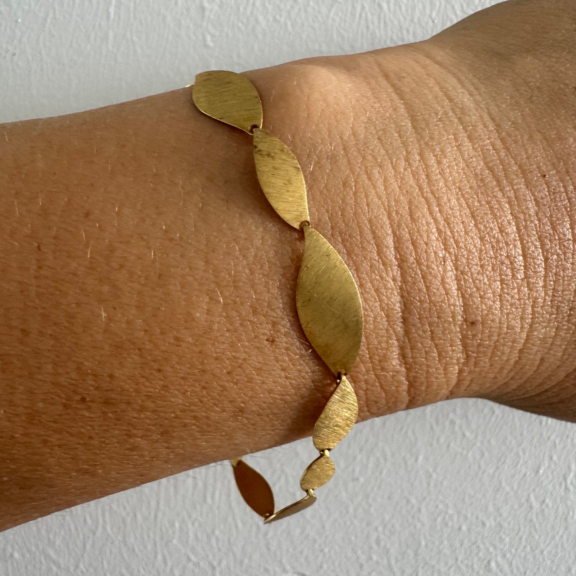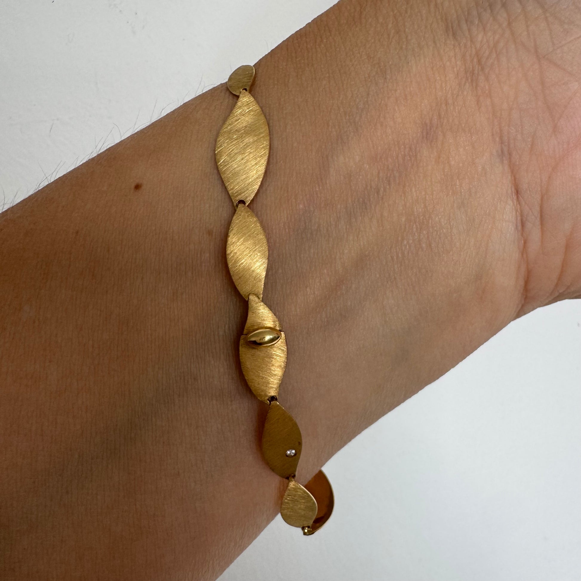 צמיד יוקרתי של המותג H.Stern, עשוי זהב 18 קראט, בעיצוב עלים מחוספסים במראה משי מט.