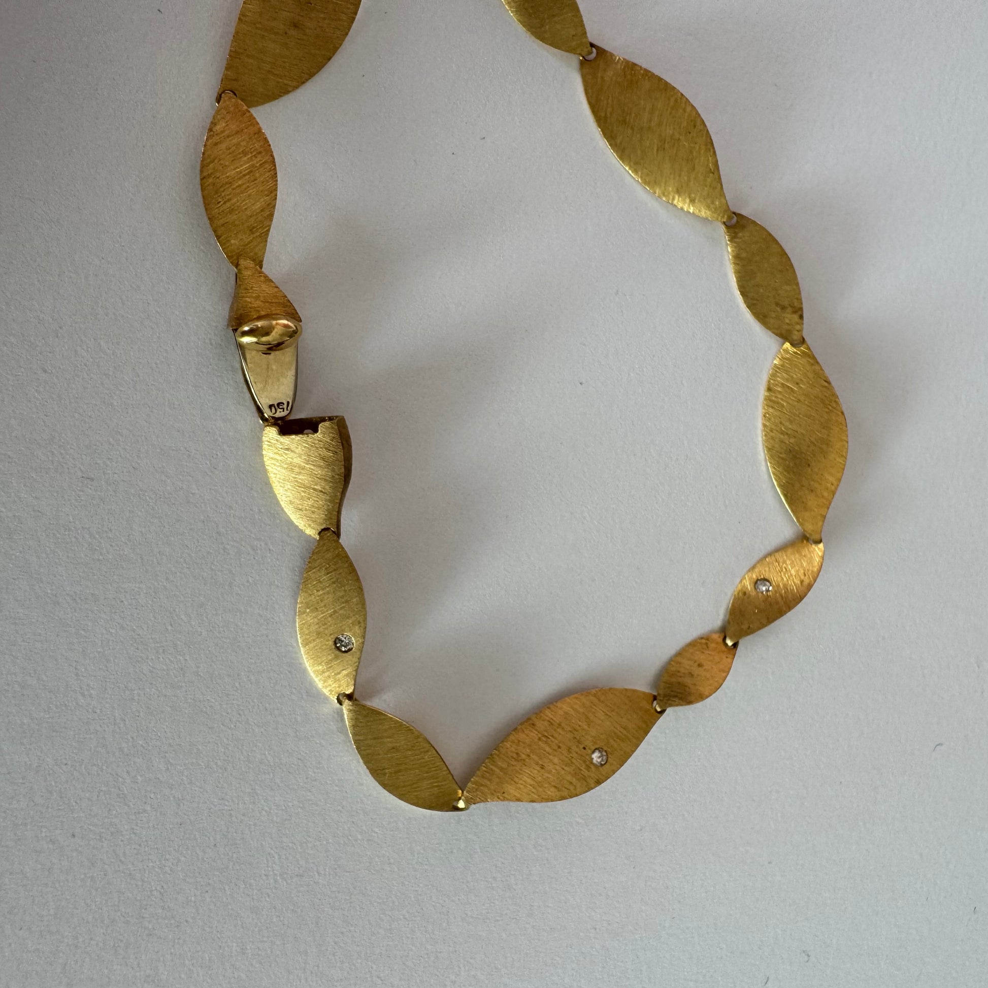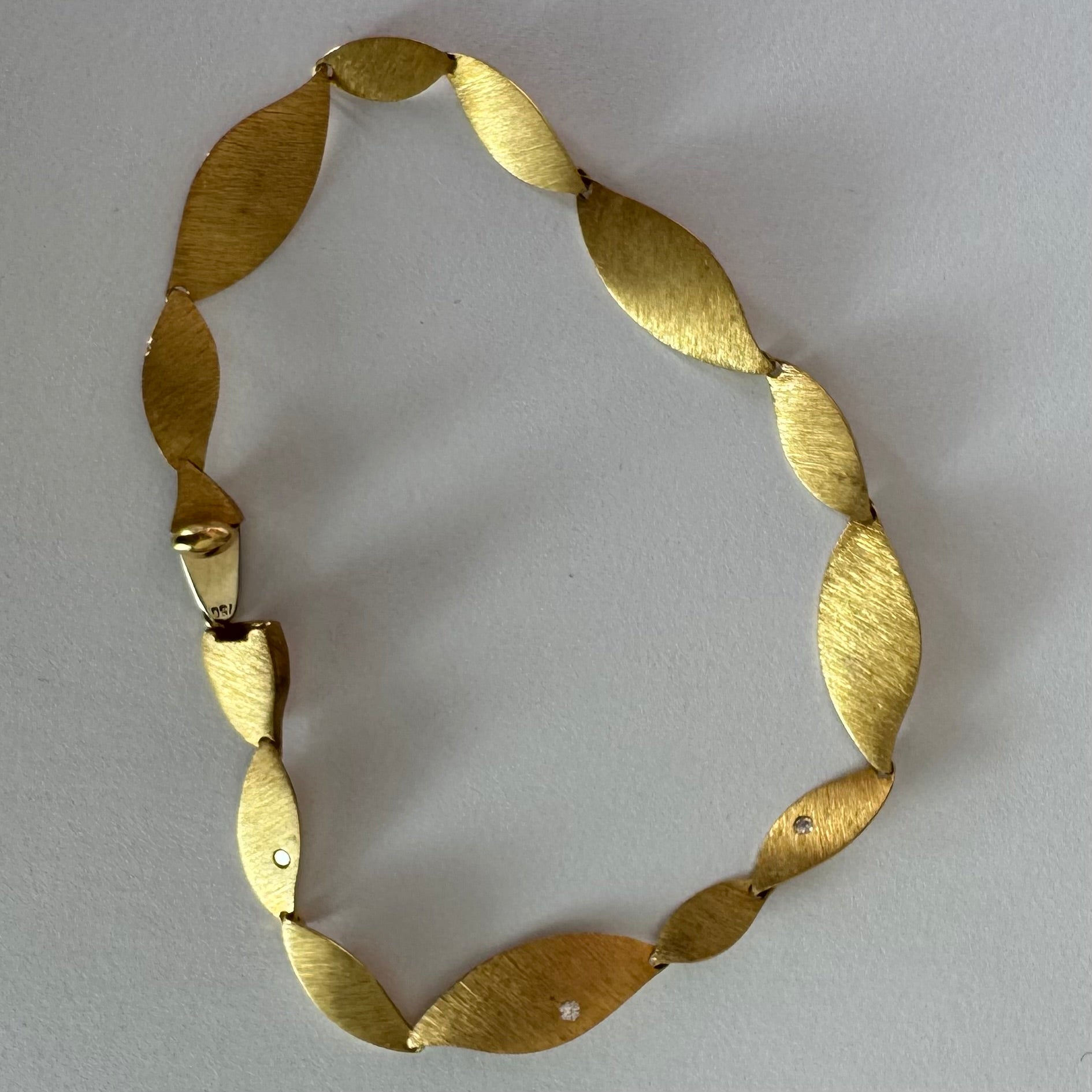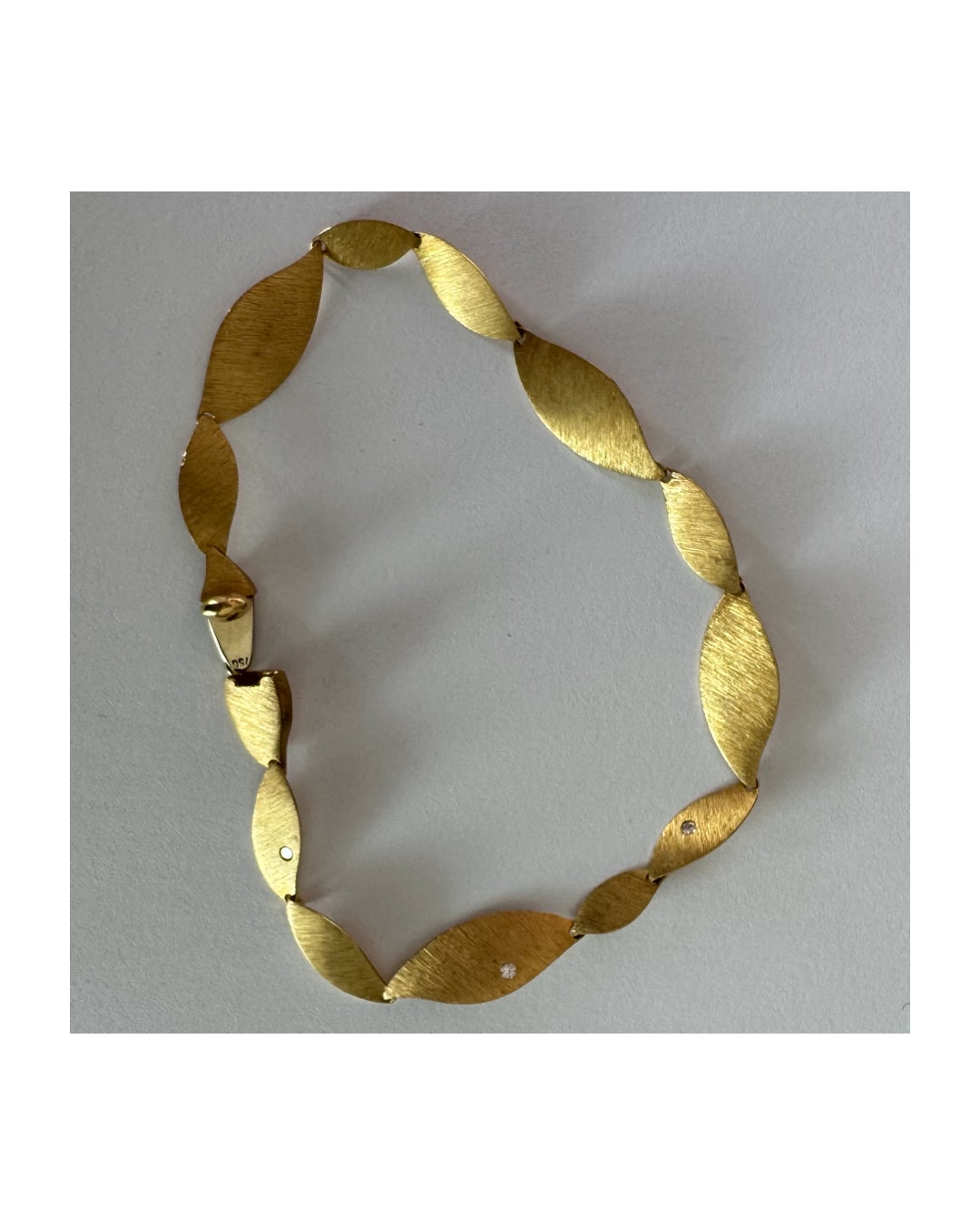 צמיד יוקרתי של המותג H.Stern, עשוי זהב 18 קראט, בעיצוב עלים מחוספסים במראה משי מט.