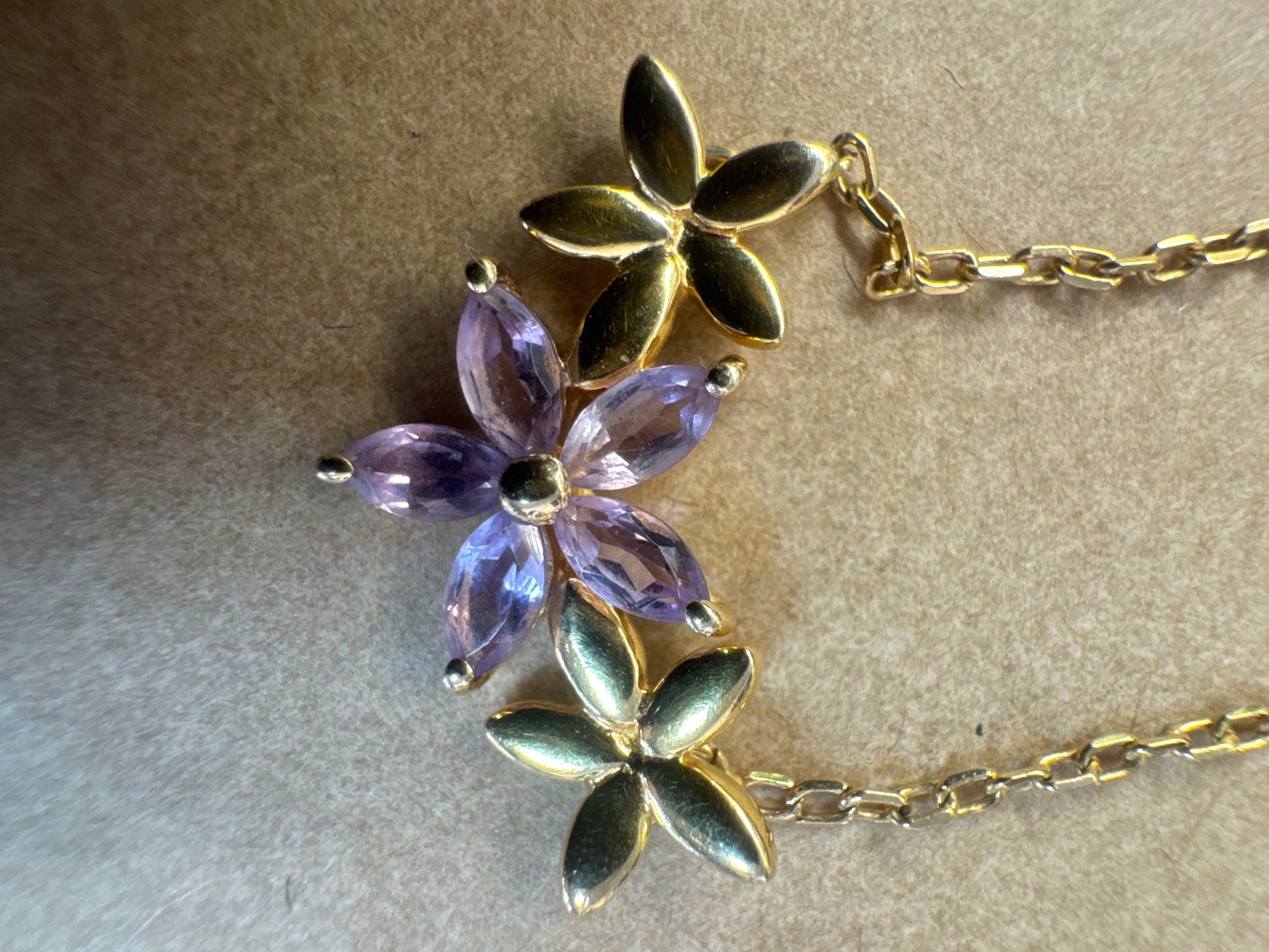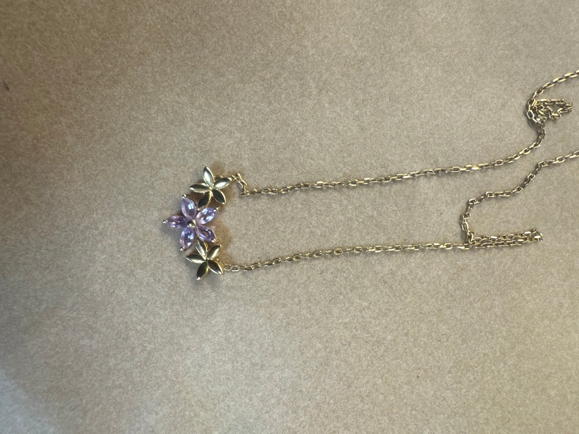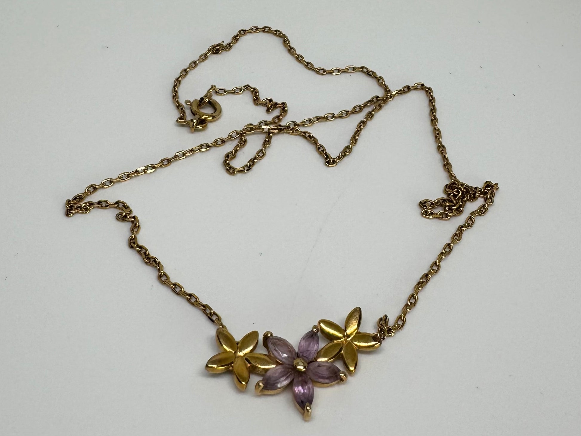 שרשרת זהב צהוב 10 קראט משובצת אבני אמטיסט