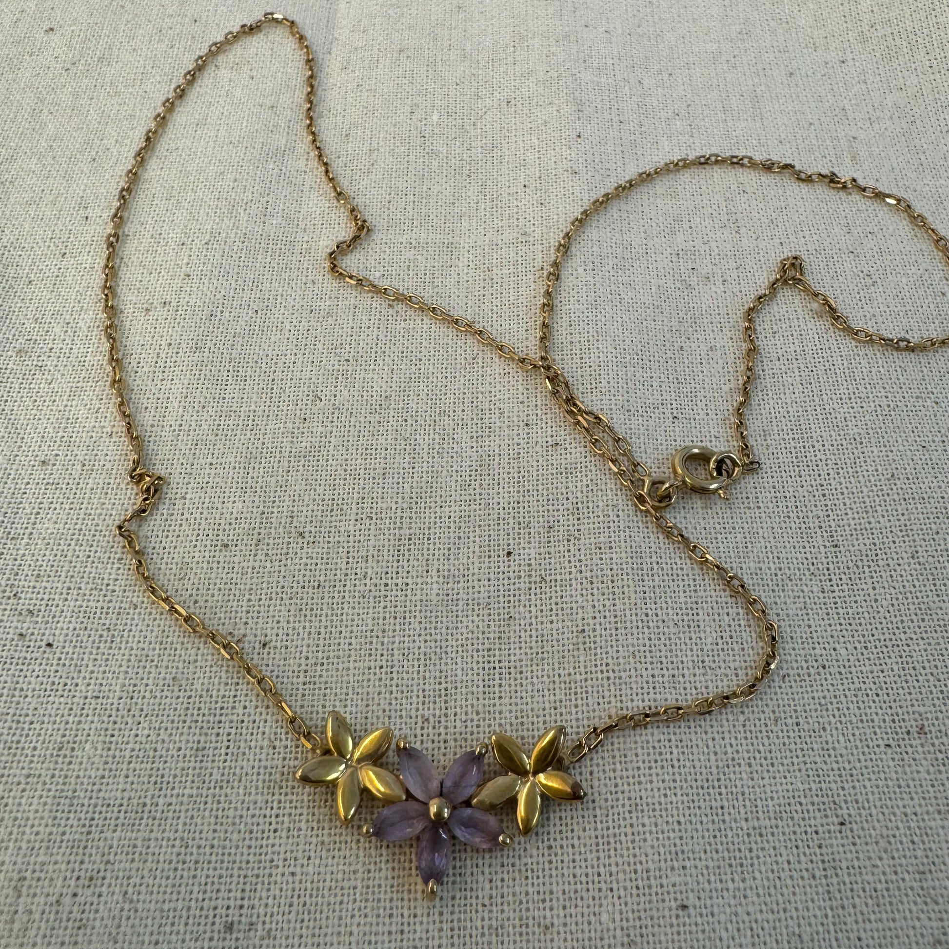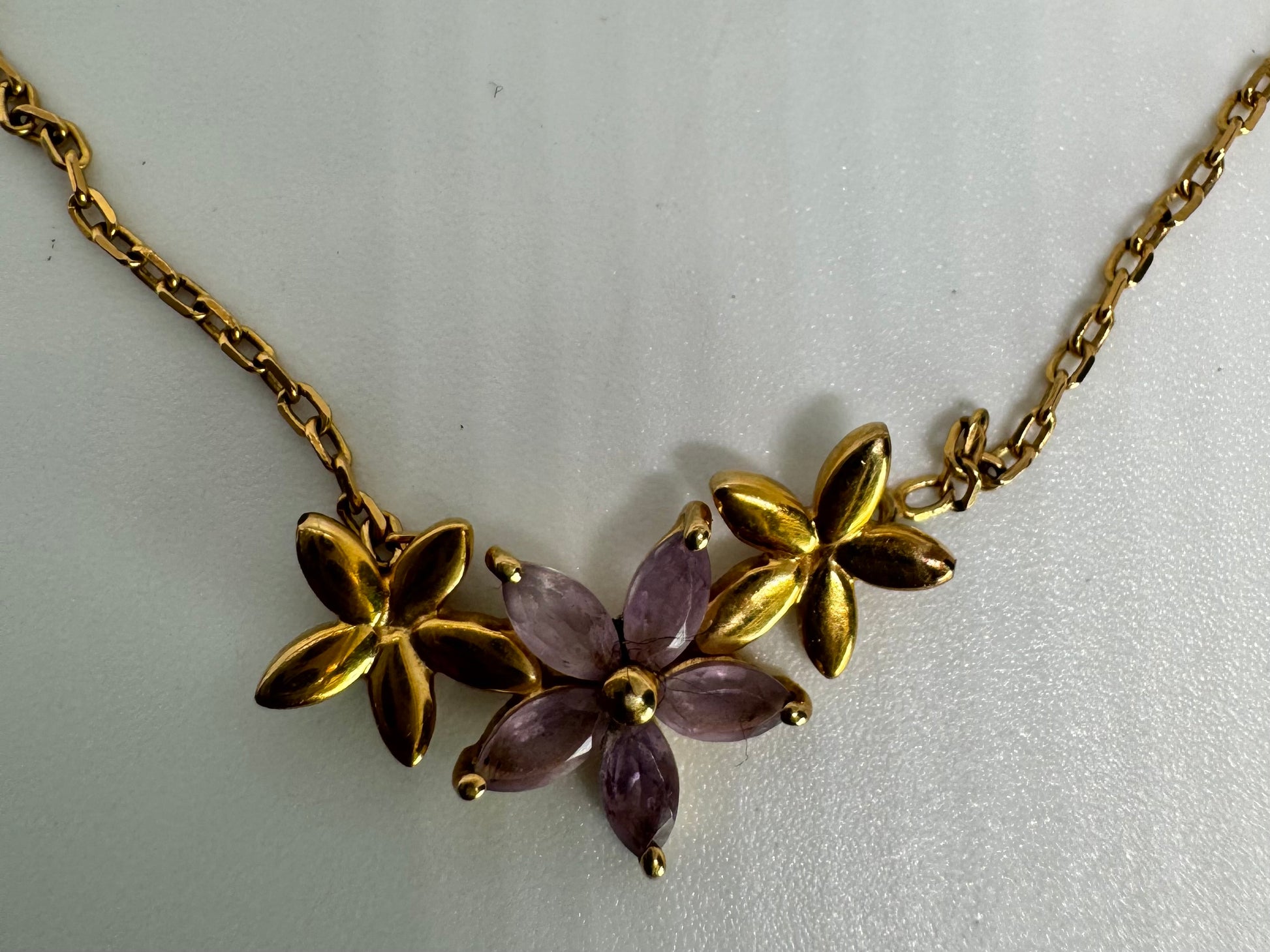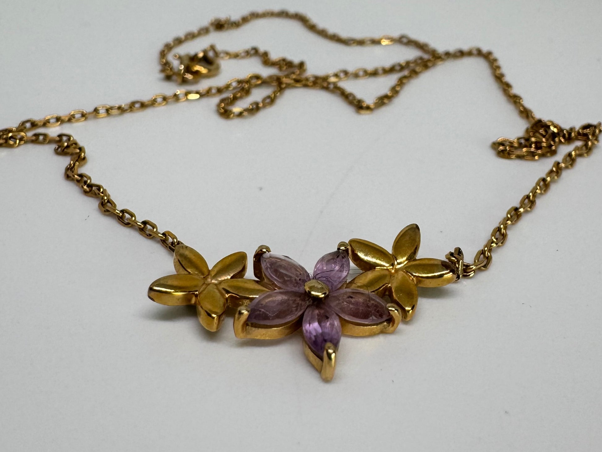 שרשרת זהב צהוב 10 קראט משובצת אבני אמטיסט