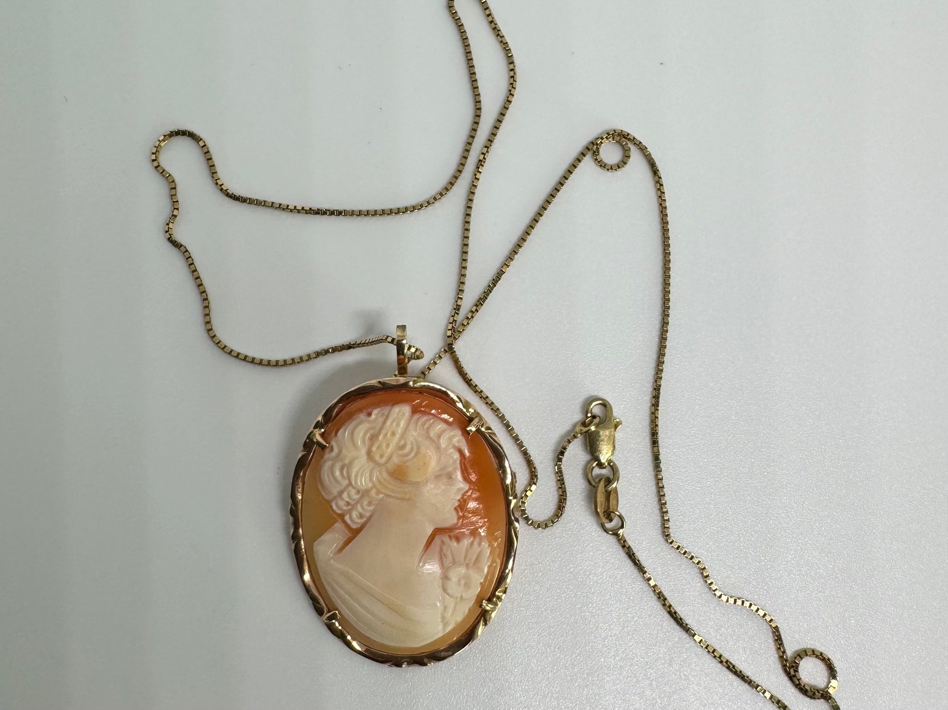 שרשרת זהב צהוב 14 קראט עם תליון ״קמאו״