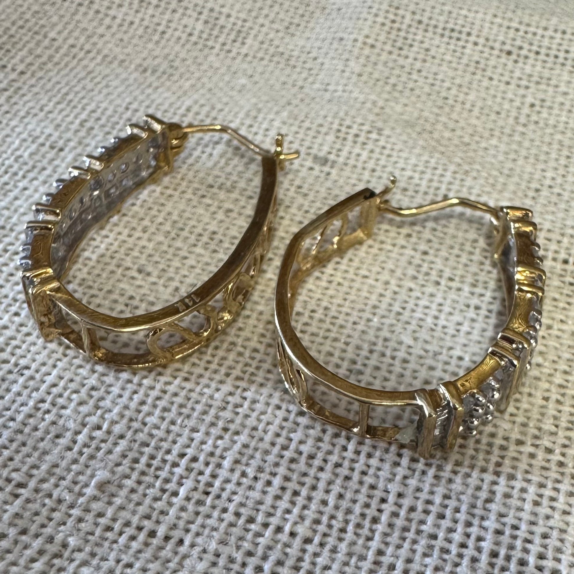 14K Two-Tone Gold hoop earrings set with Diamonds