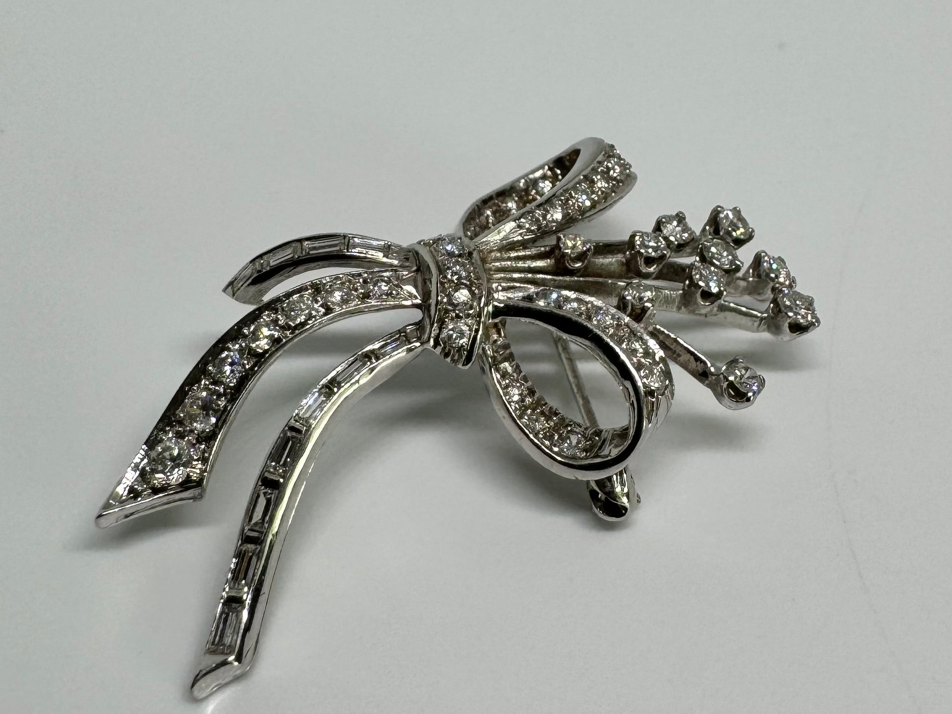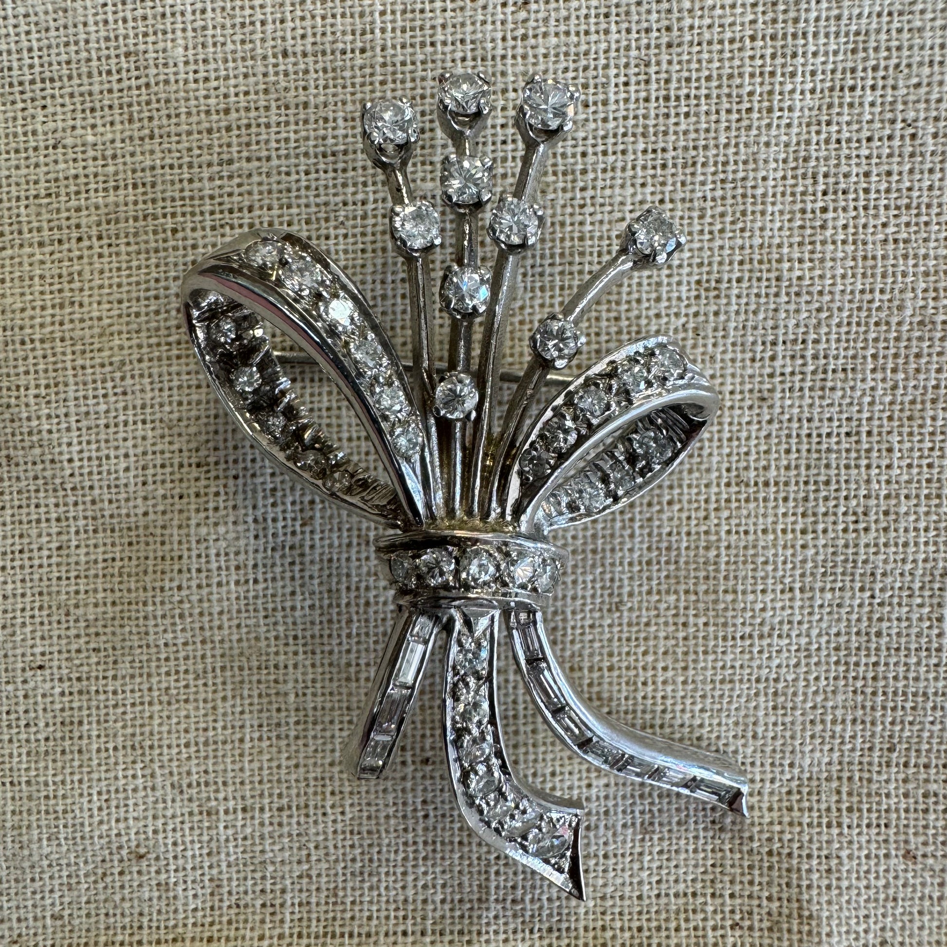 סיכת דש זהב לבן 14 קראט משובצת יהלומים