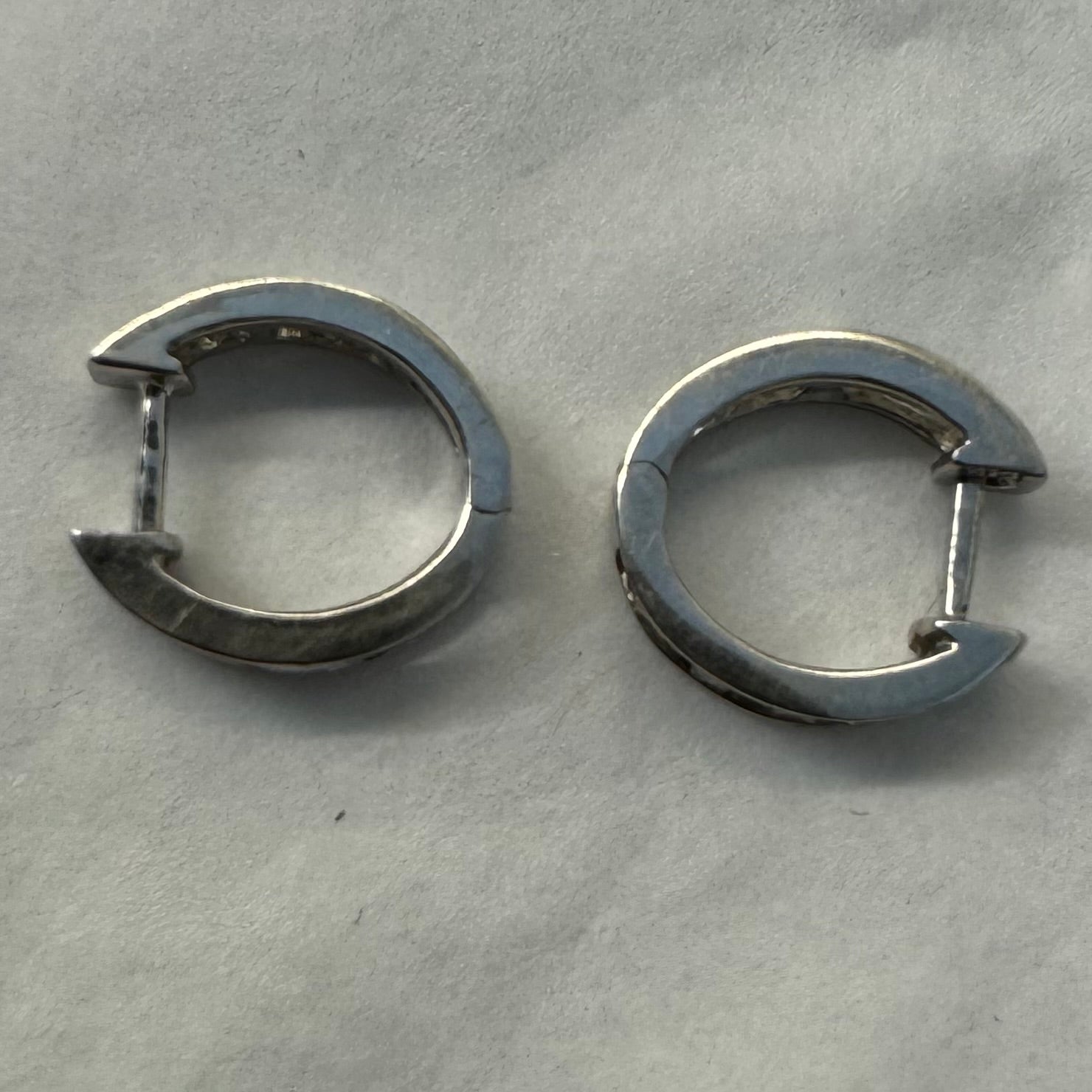 עגילי חישוק זהב לבן 14 קראט משובצים יהלומים