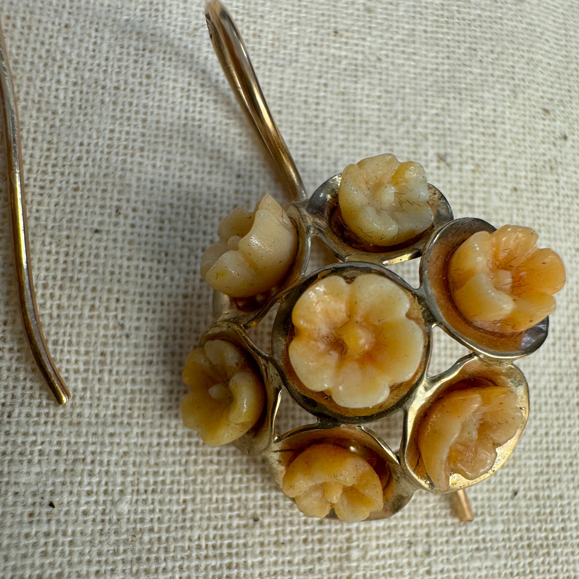עגילי זהב צהוב 9 קראט משובצים קורל